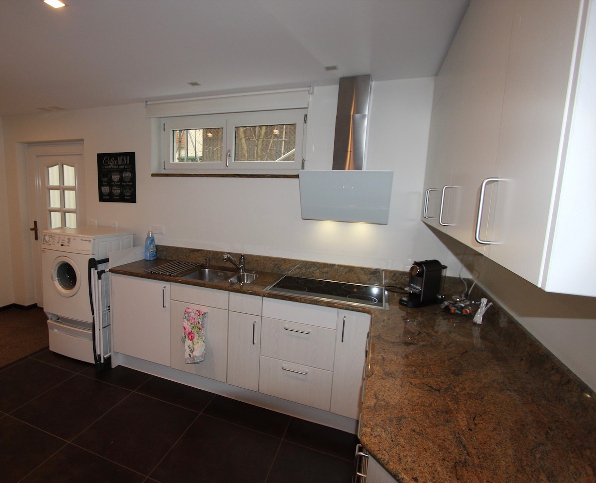 This is our 2.5 room apartment for up to 6 adults. It can still be expanded to include a studio. The large combined apartment for 1-10 people can be booked separately. (https://www.airbnb.ch/rooms/11536582?s=51) Link to studio: https://www.airbnb.ch/rooms/27916274?s=51 Our cozy apartment has its own entrance, is centrally located, with various parking options and direct access to public transport. Pets on request.