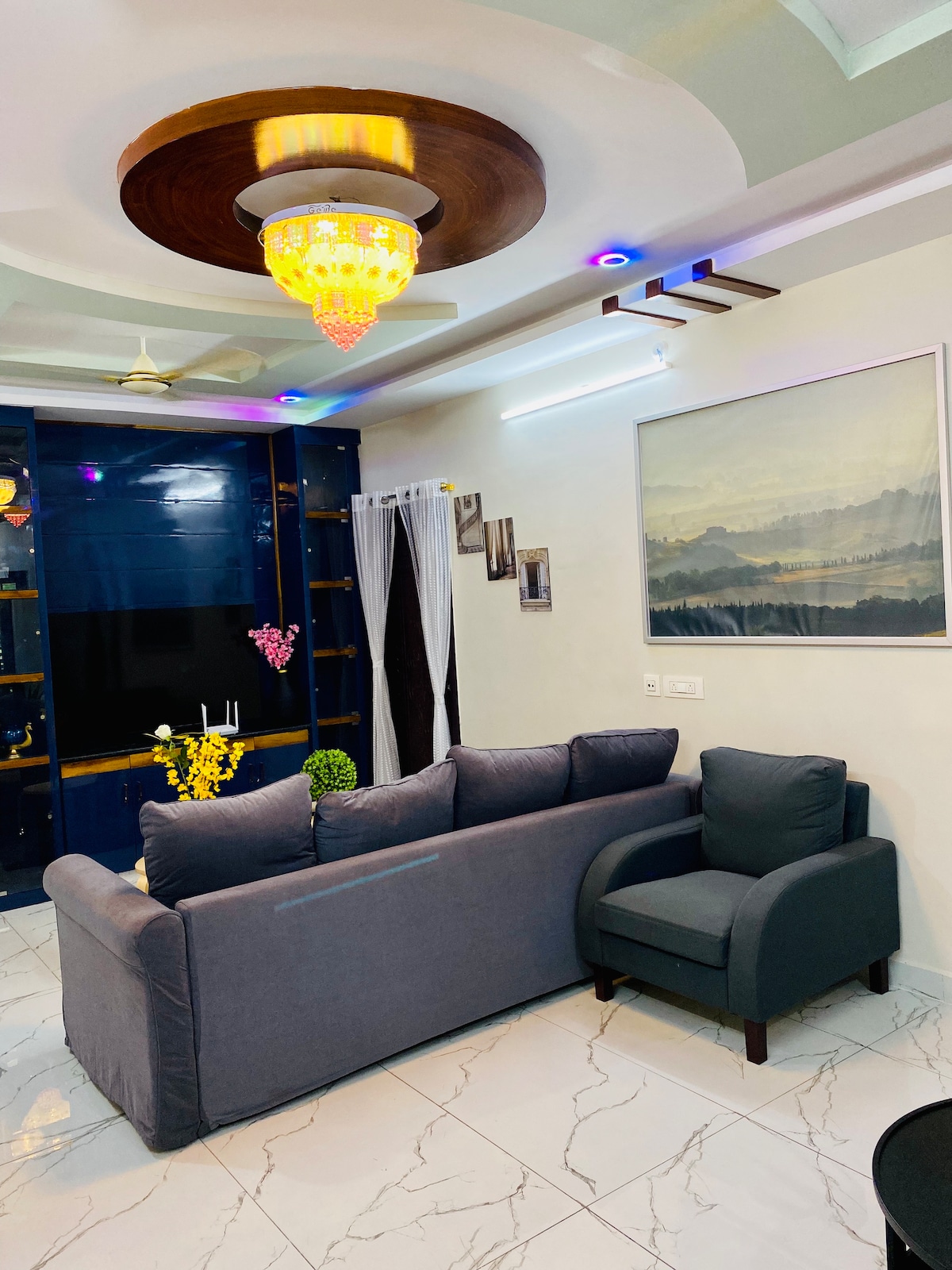 OpenSky Penthouse is a completely private top-floor retreat designed for ultimate comfort and privacy. This spacious, spotless, fully furnished stay features AC, smart TV, sofa, double bed, wardrobe, fridge, and high-speed Wi-Fi. The modern bathroom includes a geyser and essentials. Enjoy a large private terrace—perfect for relaxation, yoga, and breathtaking sunrises and sunsets. Ideal for families, couples, and business travelers seeking a serene escape.
