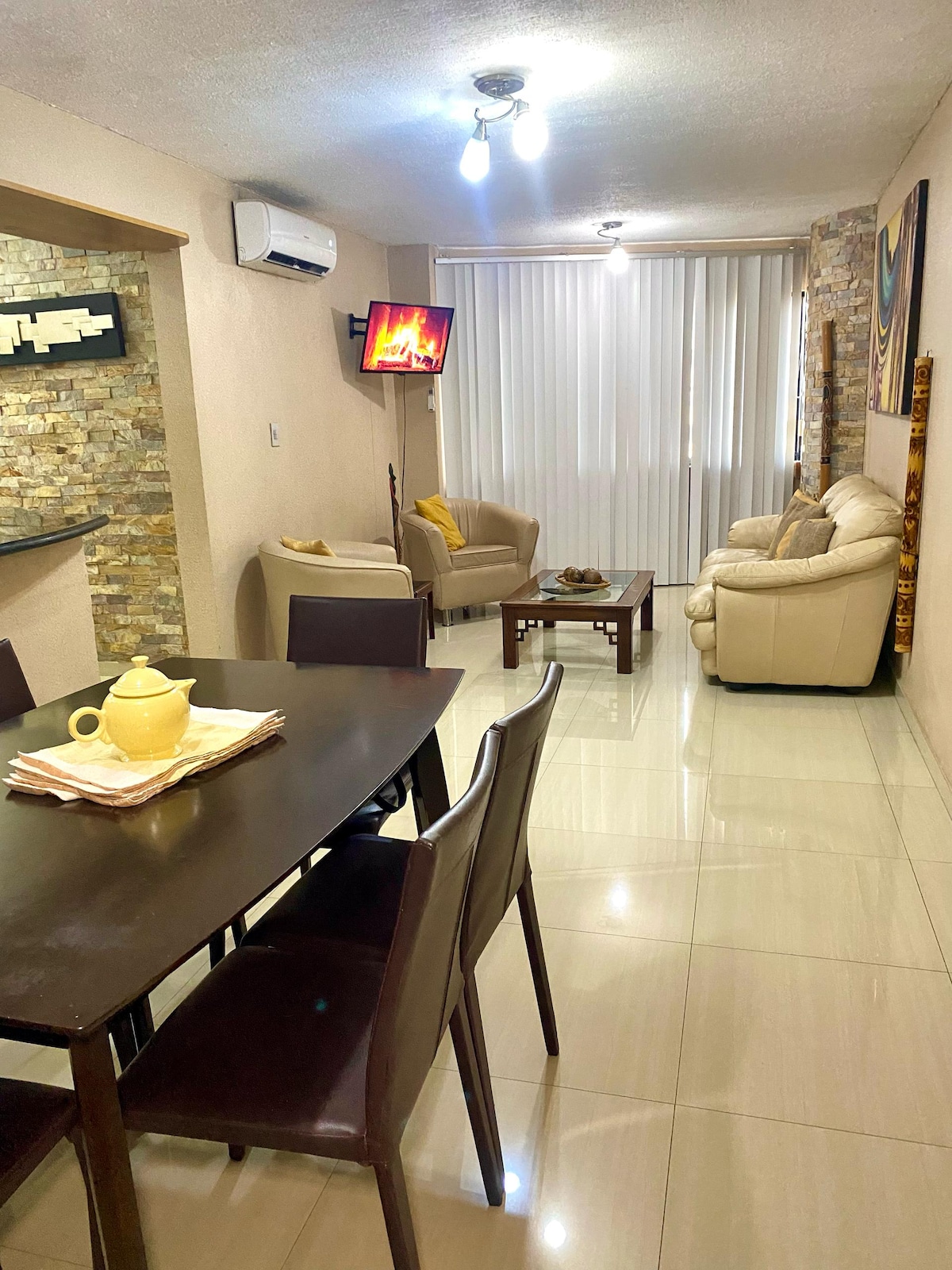 Like an apartment in a privileged development. Includes: Bed with sheet, Sofa bed, A/C, Wifi, TV with Netflix, Washer/dryer, 100% equipped kitchen, towels and toiletries, iron, hair dryer. Features of the area: The building with 100% floor, 24/7 water, a covered parking space. Two shopping malls with supermarkets, food fair, Farmatodo are 1 block away. Easy access to different areas of the city and the highway.