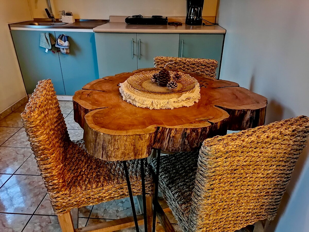 Villa de Vientos, in the heart of Apaneca, captivates at first sight with its spring-like interior garden in which three apartments converge. Independent, equipped in detail and with their own bathroom, all offer comfort, privacy and what is necessary to tune in to nature, the tranquility of the village and have a memorable stay. Apartment 1, with one bedroom and a multifunctional space with kitchen and dining room, accommodates 4 people, provides a sofa bed in the living room.