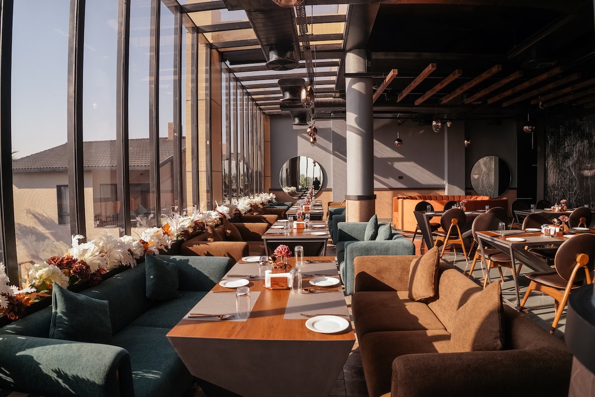 Nestled in a serene forest, this one-room rustic mud house blends rustic charm with modern luxury. The bedroom features a king-sized bed, a unique dome-shaped thatched ceiling, cozy seating, and forest-facing windows. Relax in the private pool, unwind in the outdoor gazebo, or enjoy the lush garden with a fire pit. Heritage-inspired restaurants, pool tables, and charming interiors add layers of comfort and leisure, creating a tranquil retreat where every corner invites relaxation.
