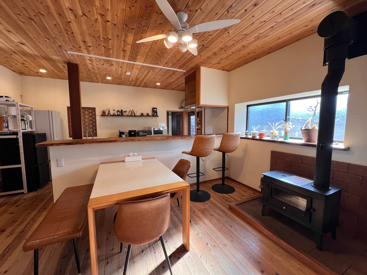This house remained in Kamimachi, Toyama Prefecture, until the end as a saw sharpening shop when saws could no longer be sold with the times. "Mete" is the work of sharpening the "eye" of a saw that has become dull. We named it Metate (Metate) with the hope that guests would hone their five senses. Relax in Kamichi-cho and sharpen your "eyes". < Dormitory Room > A genderless dormitory for 4 tall people (no key). There is a table in the room, and meetings are also possible. The high ceilings make it a comfortable place to stay. Please use the roll screen when you go to bed.