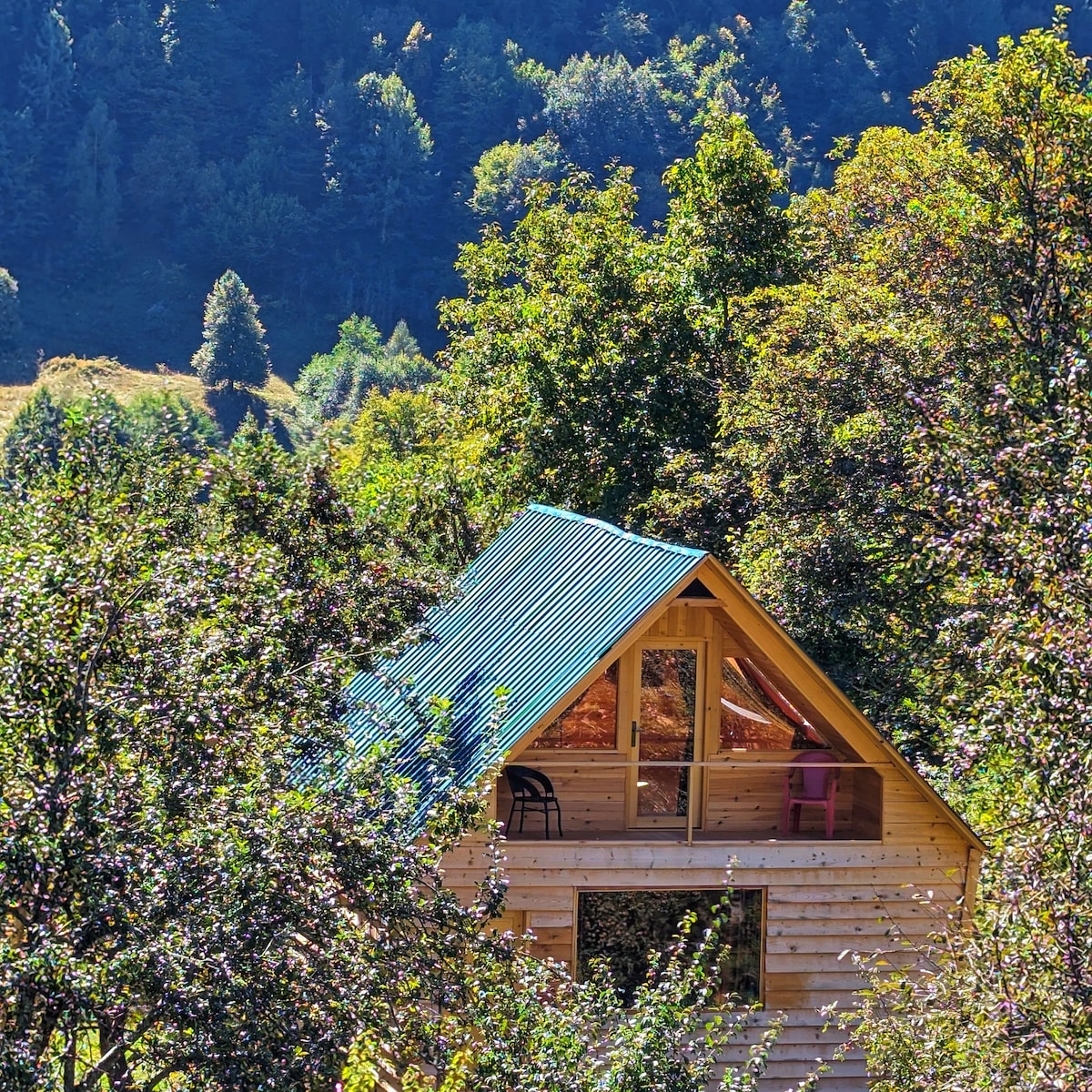 Stargazer’s Retreat with Mt. Ushba Views Escape to our wooden house in peaceful Lakhushdi. The highlight? A magical bedroom with a glass roof for stargazing, offering the best views of Mt. Ushba. Surrounded by a garden, farm, and forest, it’s the ultimate nature retreat. Includes 2 bedrooms, kitchen, and cozy living area. Want a taste of Svaneti? Our host family nearby prepares delicious, homemade farm-to-table meals upon request. Authentic, quiet, and unforgettable.