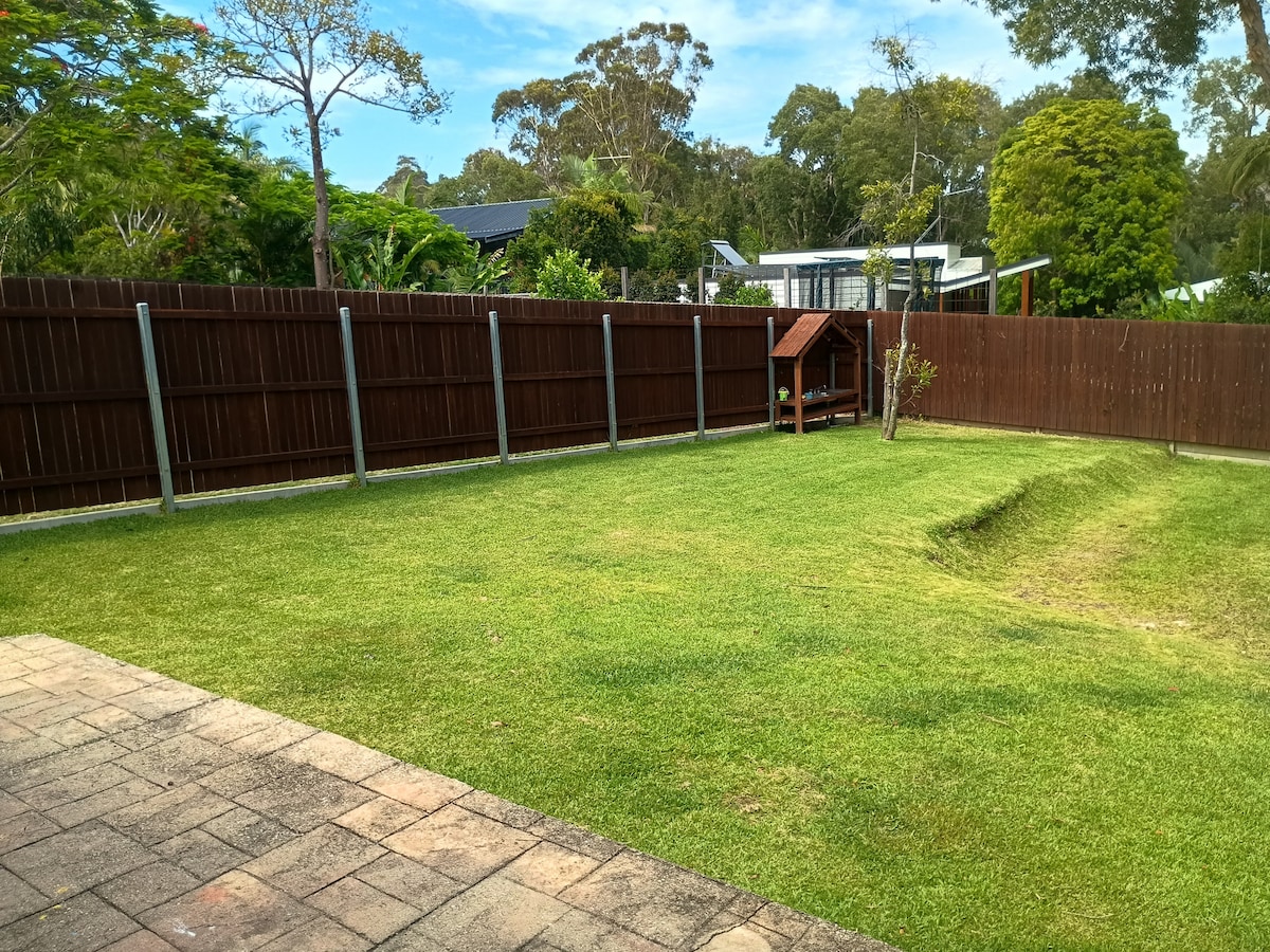 Kick back and relax in this calm, luxurious space. Enjoy sitting on the deck and watching the native birds and bush - all within an 8 min walk to beautiful Valla Beach! The beautiful deck and outdoor space is a haven to BBQ, entertain and unwind after a day fishing, surfing and exploring. Visit one of our great cafes or tavern. Our backyard birds and wildlife include: kookaburras, lorikeets, king parrots, black & white cockatoos, kingfishers, tawny frog-mouth. Kangaroos are frequent visitors.