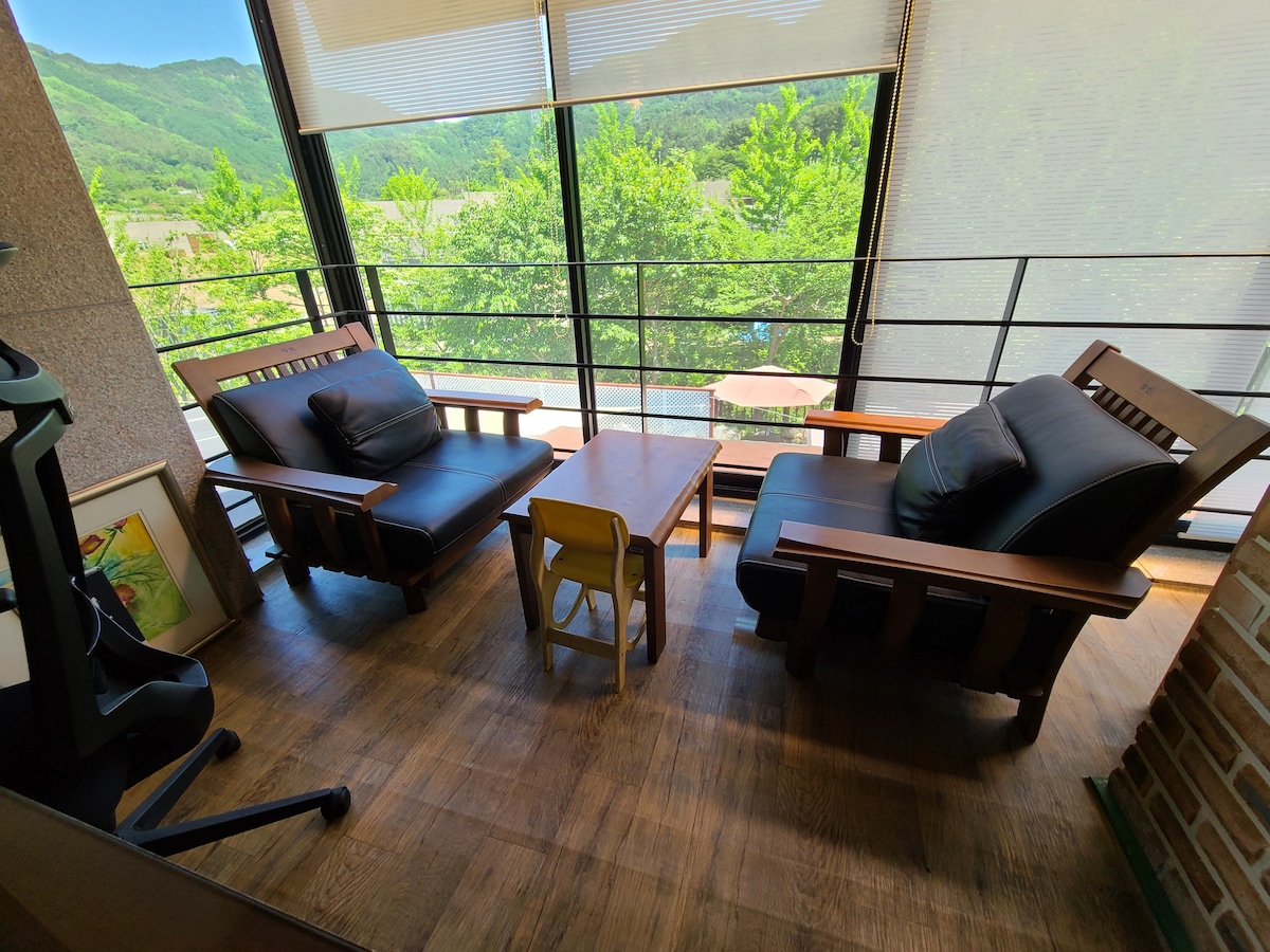 Behind you can see the pine forest of the back mountain, on the left side there is Yongju Seowon and a garden of about 200 pyeong, and in front you can see the quiet countryside. The garden is still unfinished, so we keep planting flowers and trees. On a clear day, you can see North Mountain in the distance, and you can enjoy beautiful flowers and trees according to the spring, summer, autumn, and winter seasons. It is a quiet accommodation, so you can rest comfortably. It is very independent and privacy is guaranteed without facing the front house next to the first floor. The interior is decorated with white and achromatic colors, preferring simple things. Small pets are allowed and 2 cushions and 1 food bowl are available. Beam projector and karaoke accompaniment There are two microphones, including a wireless microphone. The cloud bridge leading to the terrace and garden has been installed to make it more convenient to enjoy the garden and scenery. In the summer, there are two fans, coolers, dehumidifiers, and electric blankets. This is Deok-eun Pension, which is upgraded every day.