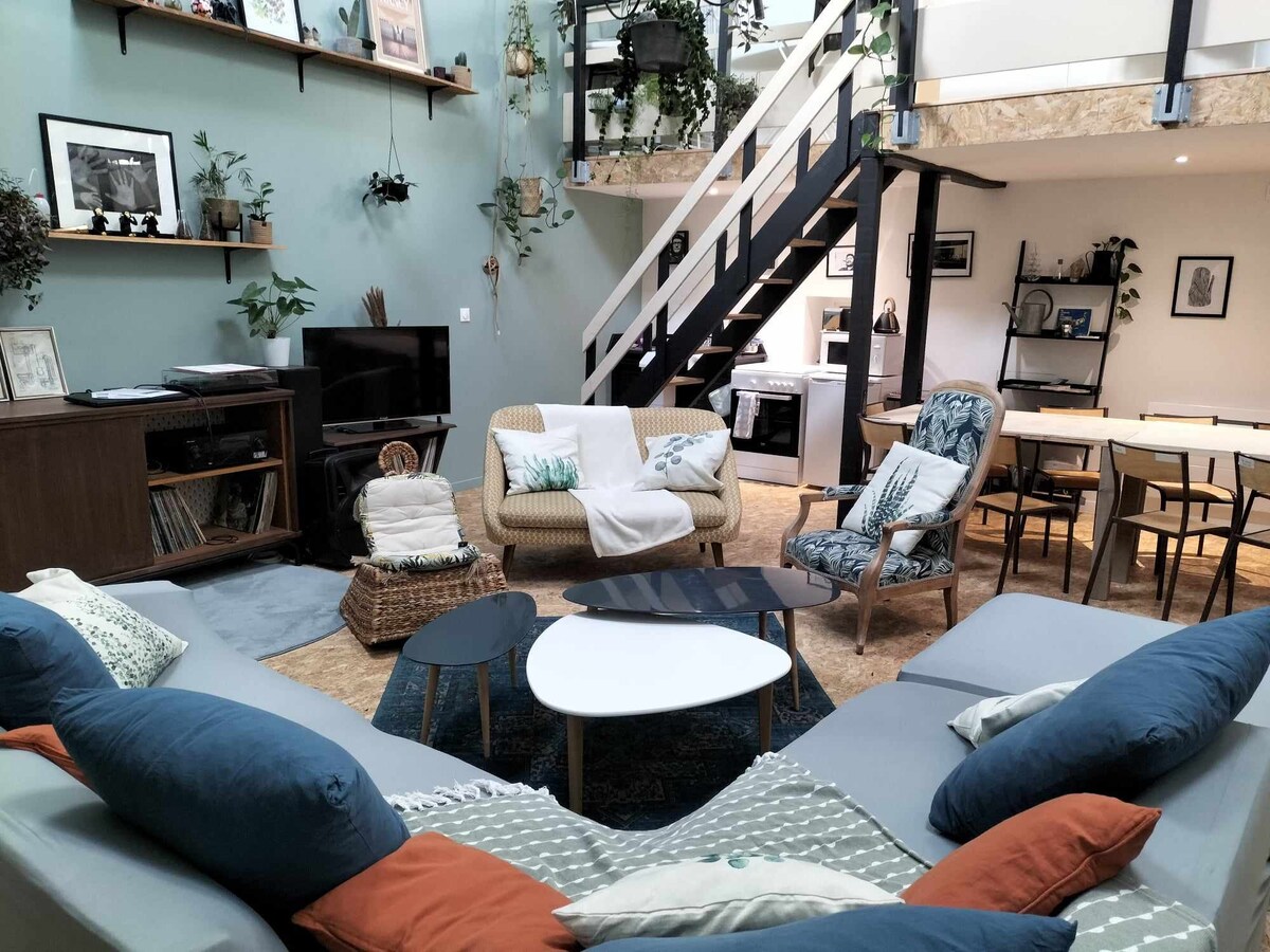 Autrefois une grange, ce triplex indépendant a été entièrement rénové avec soin et goût. Il se compose d'un studio au RDC (comprenant salle de bain avec WC, salon, cuisine et une chambre en mezzanine). A l'étage, vous trouverez un vaste salon central de 75 m² avec 2 chambres et cuisine. Au 2ème étage, une 3ème chambre avec SDB et WC . Cet espace peut accueillir confortablement jusqu'à 15 adultes et 2 jeunes enfants.