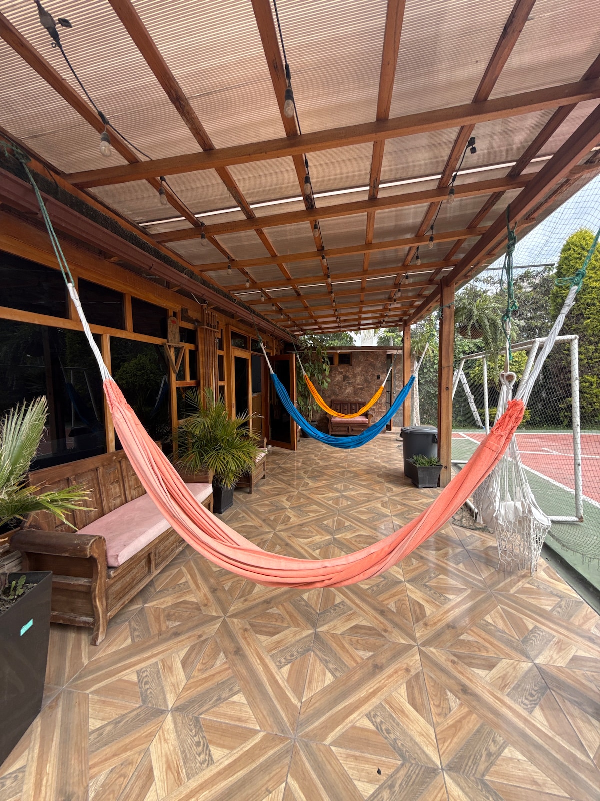 "Descubre el lugar perfecto para tus reuniones familiares o con amigos. Este espacio privado es ideal para disfrutar de un día lleno de diversión y tranquilidad. Con una cancha de baloncesto, parrilla y un área de juegos equipada con billar, ping pong y un saltarín, tendrás todo lo necesario para crear momentos inolvidables. Ven y relájate en un ambiente acogedor, donde la paz y la diversión