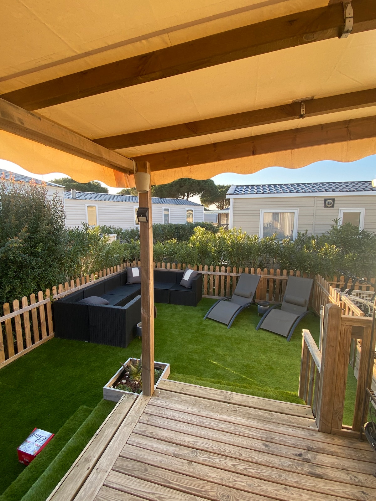 Forget your worries in this spacious and serene space! Located in a cul-de-sac in a very privileged area of the Siblu Les Sables du Midi **** campsite where everything is within walking distance, come and spend an unforgettable vacation on the shores of the Mediterranean! Beach with facilities, beachside restaurants, port, pedestrian street of Valras with its shops, small businesses and restaurants, supermarkets, village center of Sérignan, markets, entertainment, traditional festivals, férias, concerts…