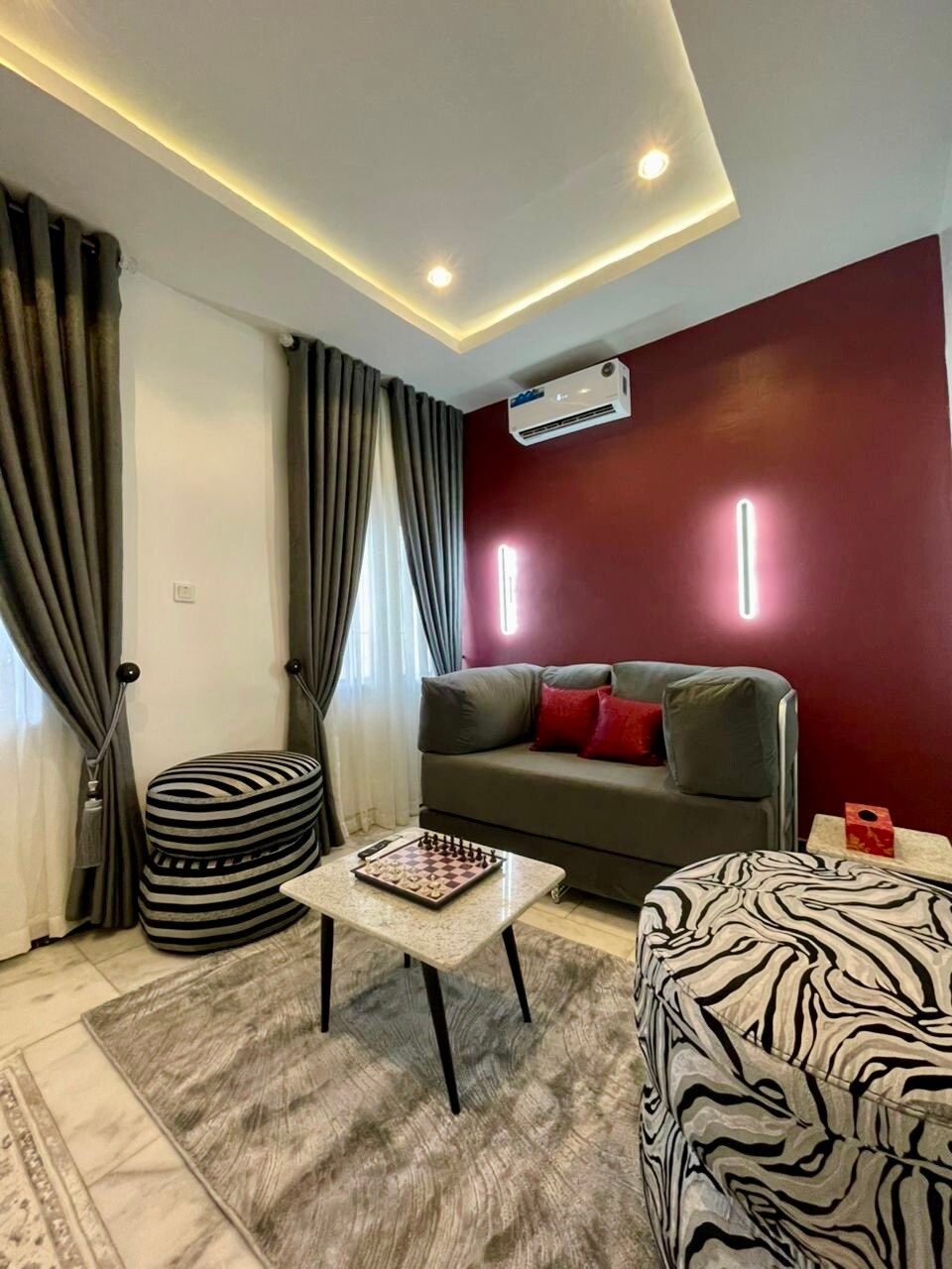 A cozy apartment located in Garki, just a 7-minute drive from the U.S. Embassy and the International Conference Centre. Only 15 minutes from Wuse 2 and Abuja’s most popular restaurants, lounges, and entertainment spots. The street features a police outpost for added security, with 24/7 power supply and reliable high-speed Wi-Fi.