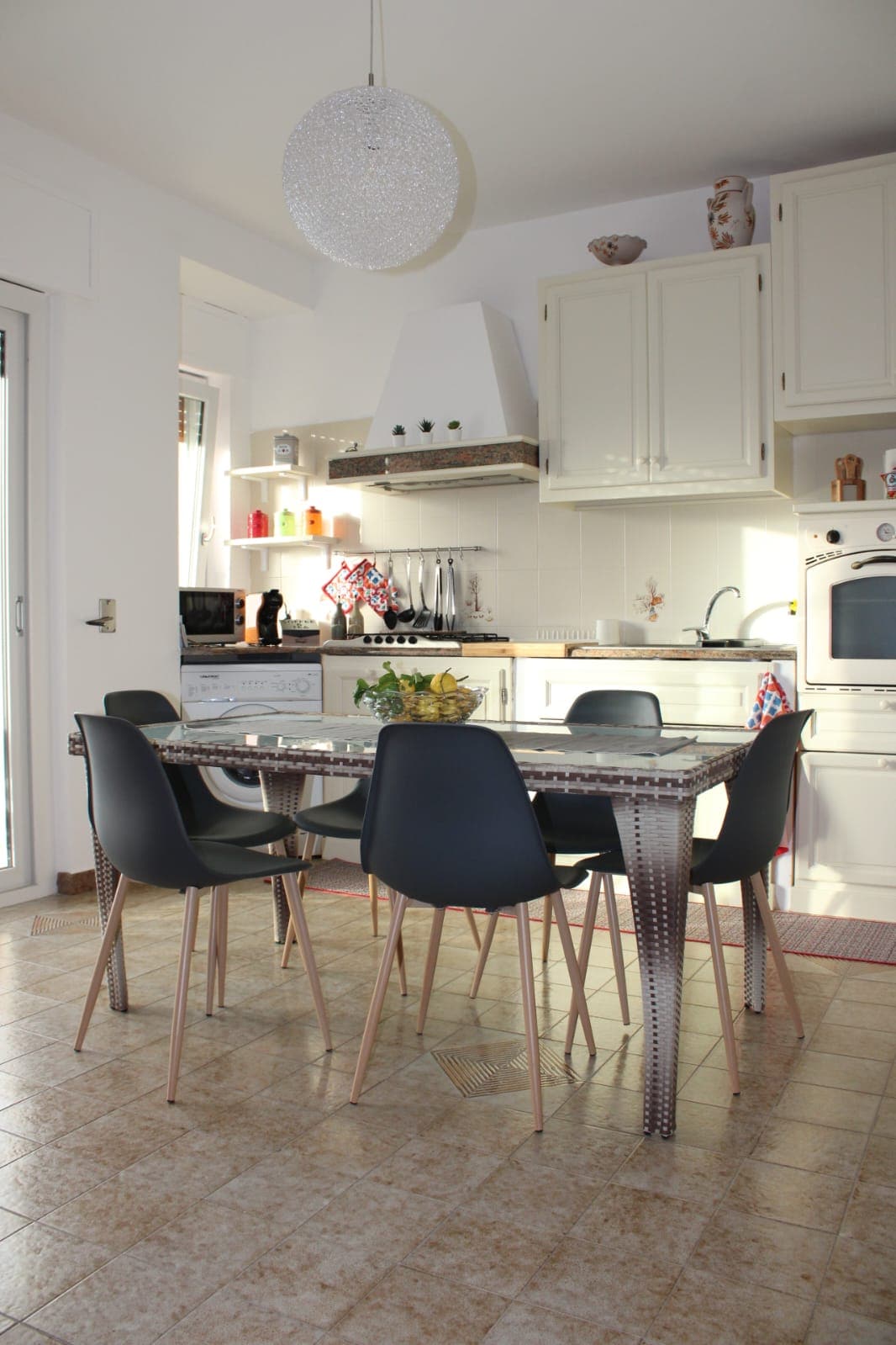 Newly built apartment, just 3 minutes on foot from the beach. The apartment has a bedroom with queen bed and a big living room with kitchen. In the living room there is s also a bed sofa. The apartment can host 4 persons. The kitchen is very comfortable and includes: microwave, oven, dishwasher and laundry washer. Car parking is inside and for free. There is also a barbecue area, a big garden and also a yard (with external table and chairs).