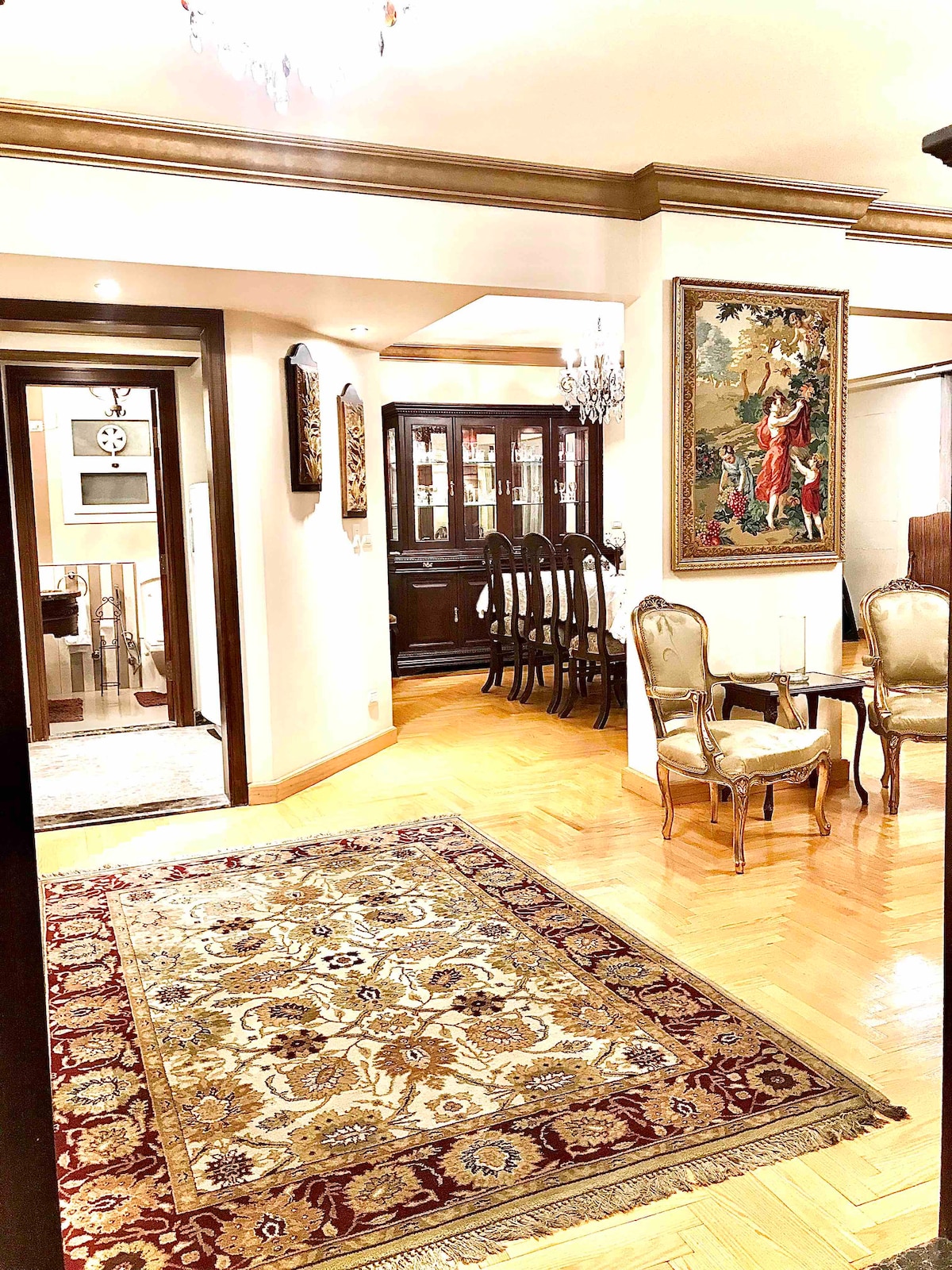 Beautifully designed luxury apartment . Private floor 2400 sq ft . A perfect getaway for family/individuals looking for neat well furnished stay in Ard El Golf- Heliopolis Cairo. A panoramic garden view along with sunshine specious area served with fully air conditioning (cold and heat). Inspired high standard amenities. Welcoming neighborhood. Metro station is 8 mints walking distance, Famous shopping malls and groceries are quite near. All over, nothing is better than a unique safe location.
