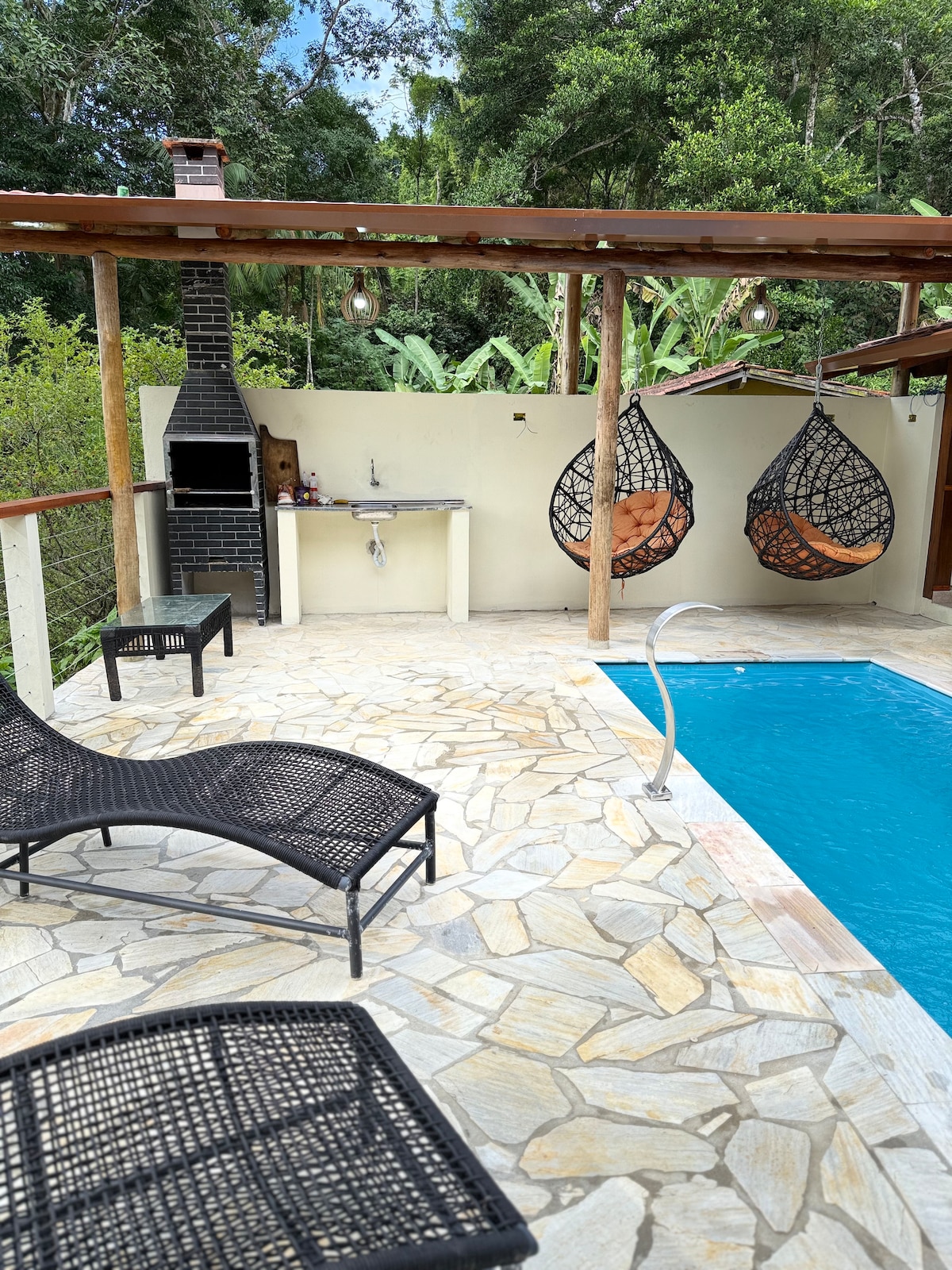 Relax with the whole family in this quiet accommodation of approximately 150 m. Modern style of staying with all the comforts, next to nature and beautiful beaches (Galhetas, Figueira and Ponta Aguda, in addition to the island of Tamanduá), with tours to the same. We are 450 meters from Tabatinga Beach and 600 meters from Galhetas. Walk to both beaches.