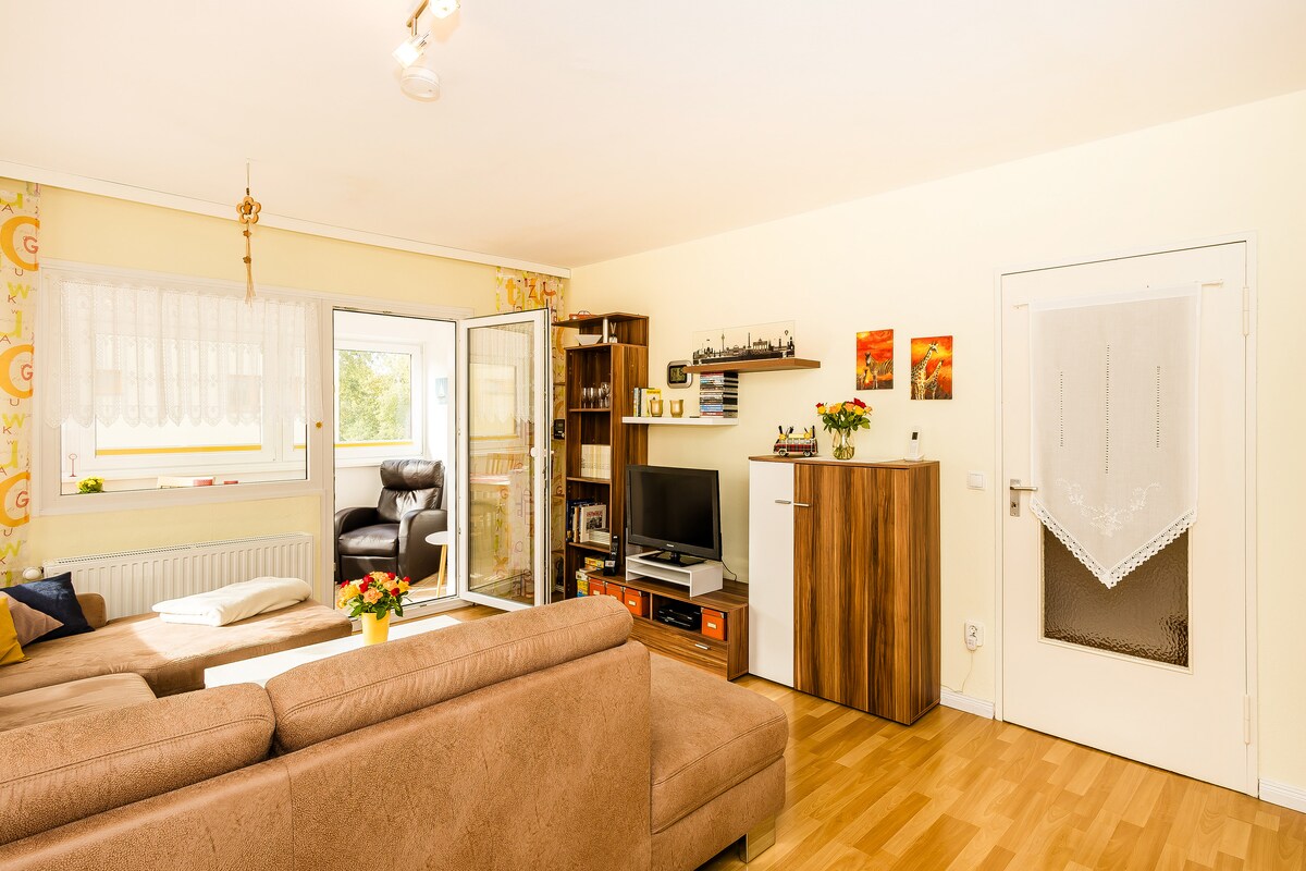 We are a Berlin-based family and have been successfully renting out part of our apartment for nine years. With 38 m², our space comfortably accommodates three adults or a family. The apartment includes bedroom, a cozy kitchen-living room with a sofa bed, and a bathroom. Each room has its own door, ensuring maximum privacy and comfort. Whether you're planning a short visit or a longer stay in Berlin, our accommodation provides the perfect retreat from the vibrant and diverse bustle of the city.