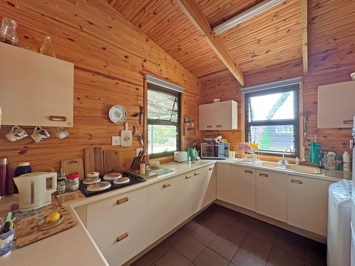 Relax with family or friends at this peaceful forest hideaway, surrounded by birdsong and indigenous trees. This neat and comfortable home is ideal for birdwatchers, hikers and nature lovers who crave tranquility. Wander along a pristine beach or the lagoon where Fish Eagles soar. Inside you will find a warm, retro-inspired charm with everything you need to unwind and reconnect. Whether you are relaxing, exploring forest trails, or sharing meals on the deck, the space invites you to slow down.