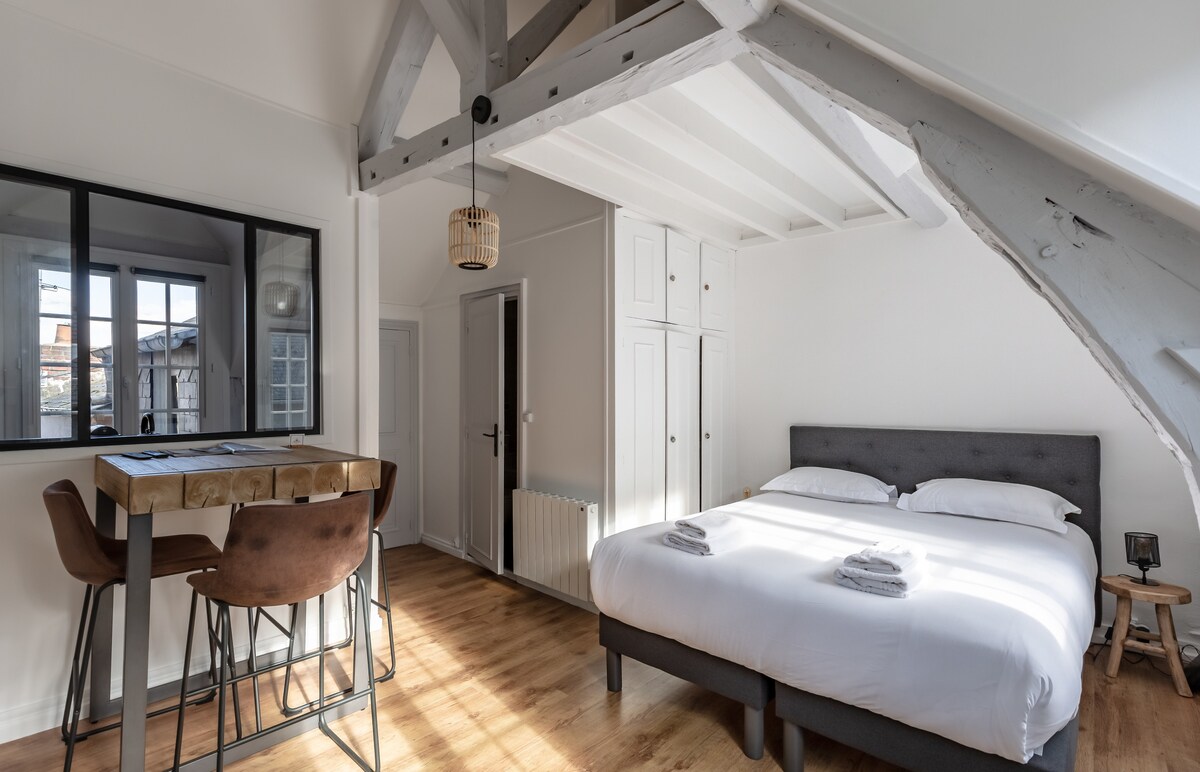 La Capucine is a 20 m² bright and comfortable cocoon, perfect for a romantic stay in the heart of Honfleur’s historic center. Blending old-world charm and modern elegance, it features a double bed, a fully equipped kitchen, and a bathroom with a bathtub/shower. Just a short walk from the port and shops. Linen, cleaning, and WiFi included. Book now!