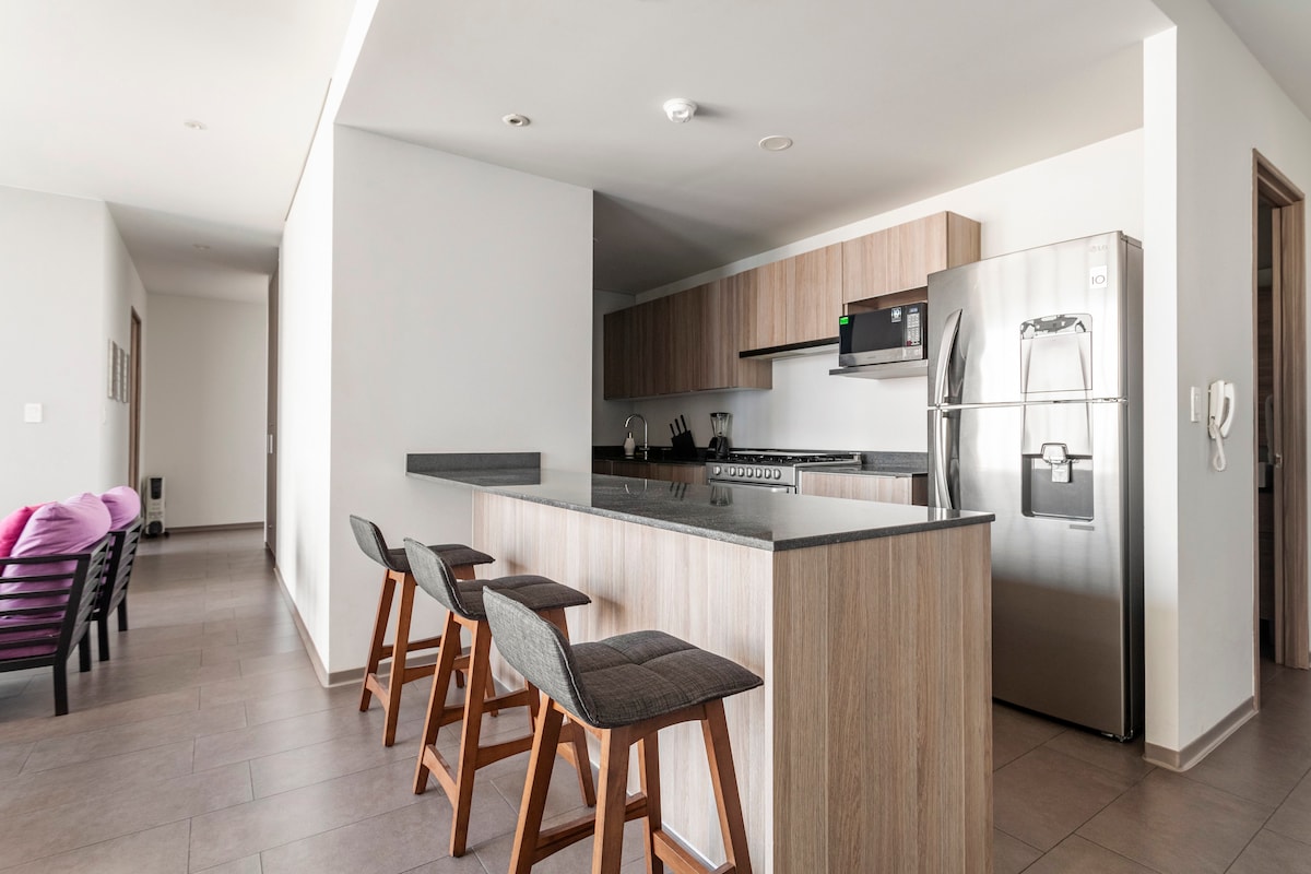 The location? Unbeatable. It’s just 2 blocks from Lincoln Park in Polanco, the most beautiful neighborhood in Mexico City. The apartment? Fantastic! It has 2 bedrooms, 2 full bathrooms, a fully equipped kitchen, a living room and a Smart TV. But the best part is its private balcony! Step outside and enjoy the breeze with a warm cup of coffee or tea. Common areas? A gym, business center, meeting room & a rooftop with a grill!
