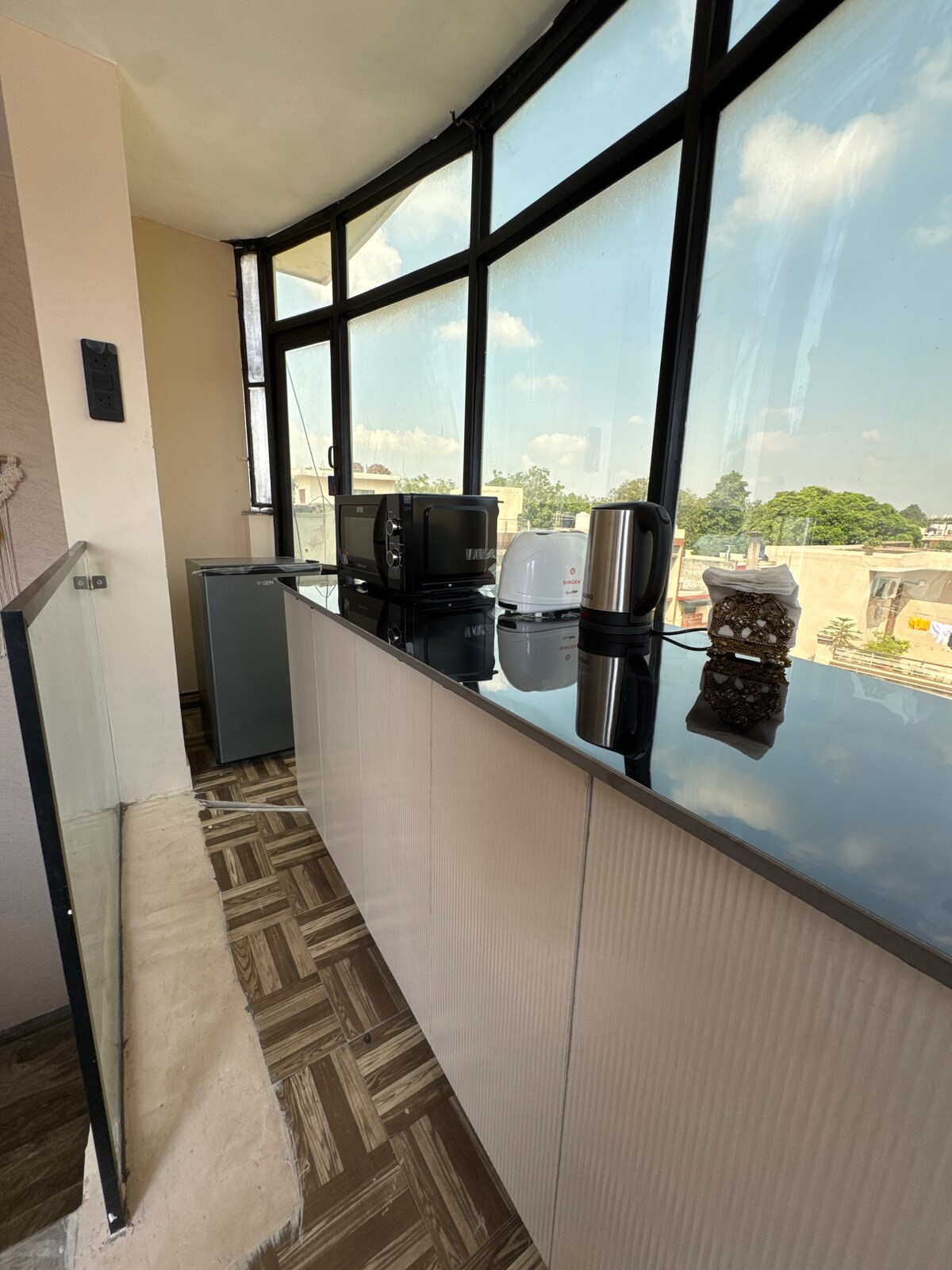 ✨ Chobara707 – A Royal Rooftop Escape ✨ A stylish penthouse with elegant interiors, a cozy bedroom, and a compact kitchen. Enjoy a large-screen tv for movie night & game night with your close ones, or step onto your private rooftop deck with swings, greenery, and open-air seating — perfect for coffee mornings, cocktail evenings, or starlit nights. Centrally located yet private, Chaubara is your serene escape above the city. 🌌 1 km from 43 busstand chandigarh 2km frm 3b2 mohali 3km frm cp67 mall