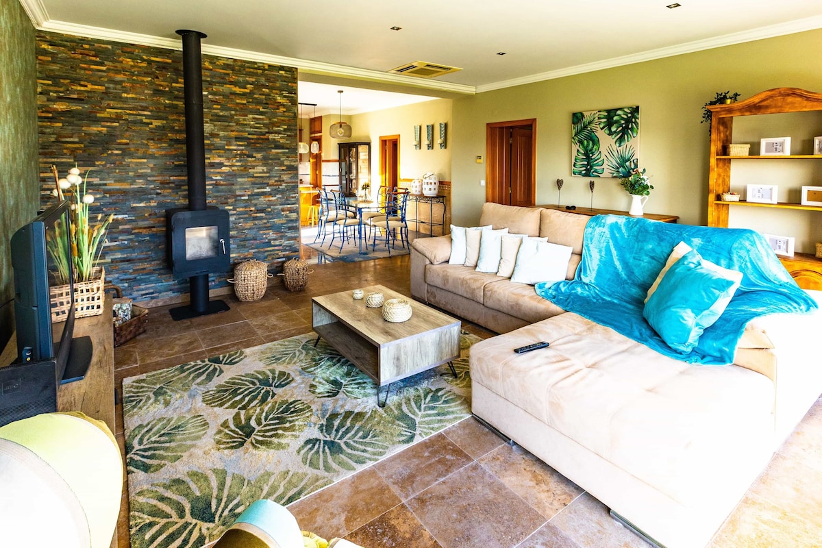 Very comfortable and cozy villa with modern decor, with a privileged view of the Serra de Aire and Candeeiros, in perfect harmony with nature and animals. 2 double bedrooms + 1 single bedroom 2 baths Equipped Kitchen Nearby you can find numerous tourist attractions, gastronomic attractions, beaches and pedestrian itineraries. Castelo Porto de Mós -6Km Batalha Monastery -8Km Monastery Alcobaça -12Km Castelo Leiria -20Km Praia da Nazaré -25Km Fatima Sanctuary -28Km Animals are allowed.