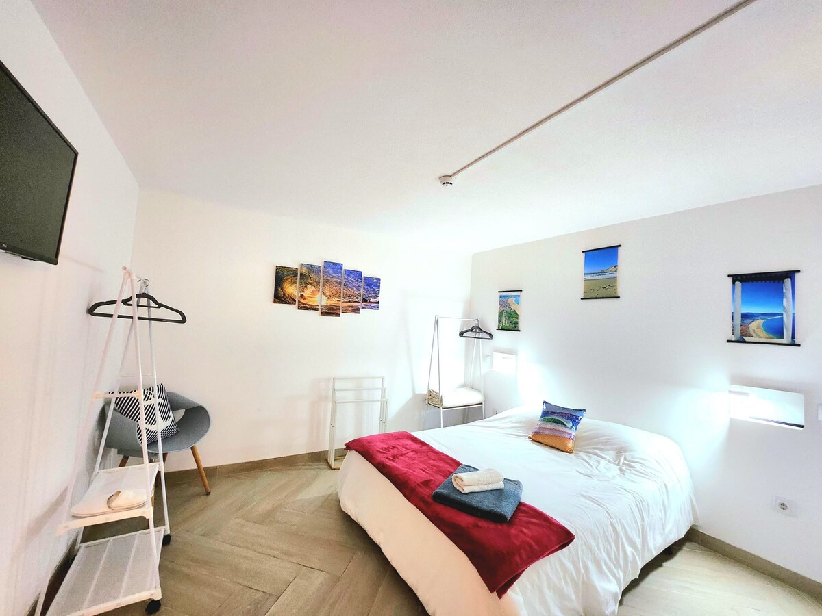 THE APARTMENT FOR YOU ONLY - IT IS LOCATED ON THE GROUND FLOOR WITH A LARGE CLOSED TERRACE - QUIET AREA - 15/20 MINUTES WALK FROM THE BEACH (for the brave because on the way back it's uphill) OTHERWISE 5 MINUTES BY CAR - BATHROOM - 1 BEAUTIFUL BEDROOM - 1 LIVING ROOM WITH KITCHEN AREA - BARBECUE - LOUNGERS - TABLE AND GARDEN FURNITURE - 2 PEOPLE MAXIMUM - QUIET LOCATION BUT CLOSE TO SHOPS - WIFI AND FRENCH TV (you only have access to the terrace but I will water the flowers)