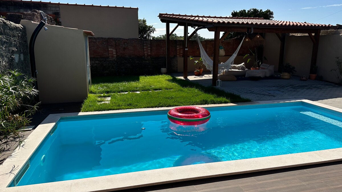 This peaceful accommodation offers a relaxing stay for the whole family, in the tranquility of nature. Totally private to ensure all the necessary safety and distance. Fully equipped kitchen, 3 bedrooms, 2 bathrooms and wifi. Large garden with barbecue and swimming pool.