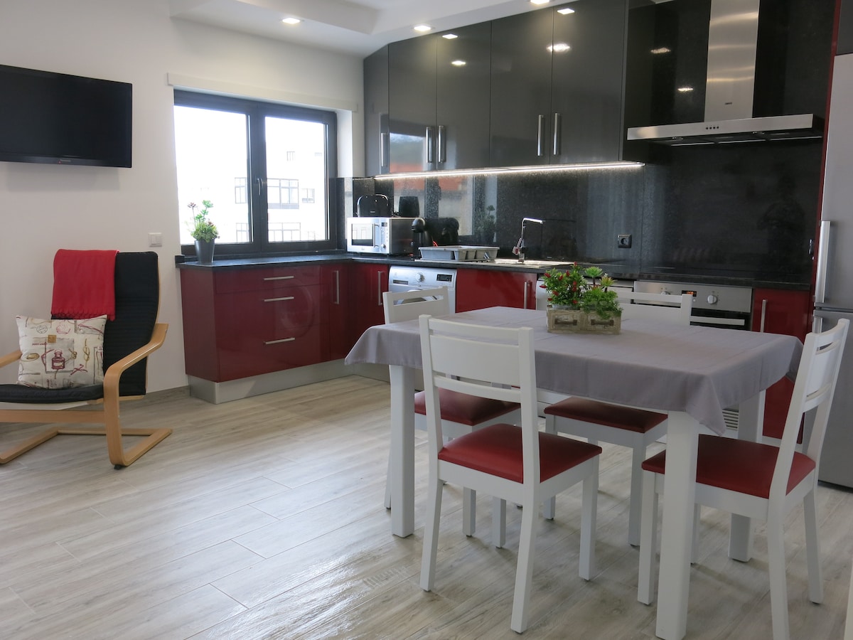 Great opportunity to stay in a brand new building in the heart of Nazare. This beautiful 1 bedroom, with 2 adorable verandas overseeing the ocean of the amazing Nazare beach. Fully equipped kitchen and living room combo with Smart TV, nest speaker, fast WIFI. You can have 2 extra guests who can sleep on the comfy pull-out sofa., unit sleeps 4 total. This unit was prepared with comfort and rest in mind. Sleep on the best mattress made by a leading company. You will not be disappointed.