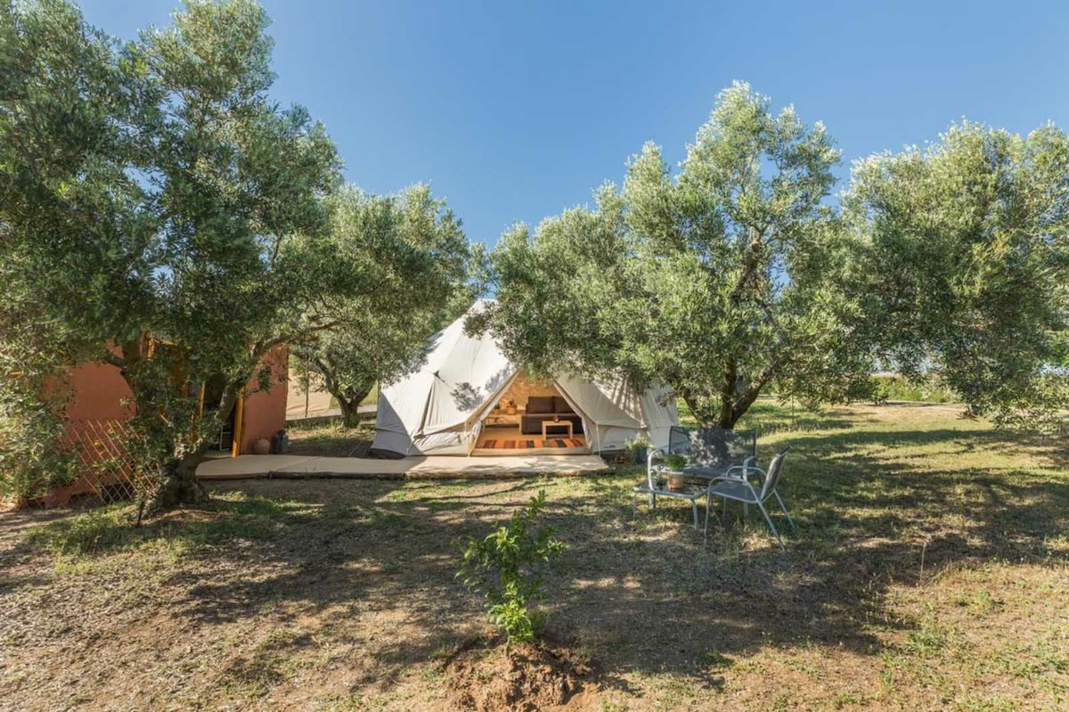 Glamping Tent στο Μεσημέρι Θεσσαλονίκης μεσα σε εκπληκτικό ελαιώνα, σε απόσταση 10 λεπτών από τις κοντινές παραλίες της περιοχής με αυτοκίνητο. Η σκηνή 25m2 διαθέτει 1 διπλο κρεβάτι, 1 καπαπέ-κρεβάτι ,κλιματιστικό και δίπλα της υπάρχουν ιδιωτικοί χώροι κουζίνας, μπάνιου και έπιπλα εξωτερικού χώρου(τραπεζαρία-αιώρα κτλ).Είναι πλήρως επιπλωμένο και διαθέτει όλες τις ηλεκτρικές συσκευές. Το κατάλυμα βρίσκεται σε ένα κοινόχρηστο κτήμα 5,5 στρεμμάτων με ελαιώνα,αμπελώνα και μια μικρή φάρμα ζώων.
