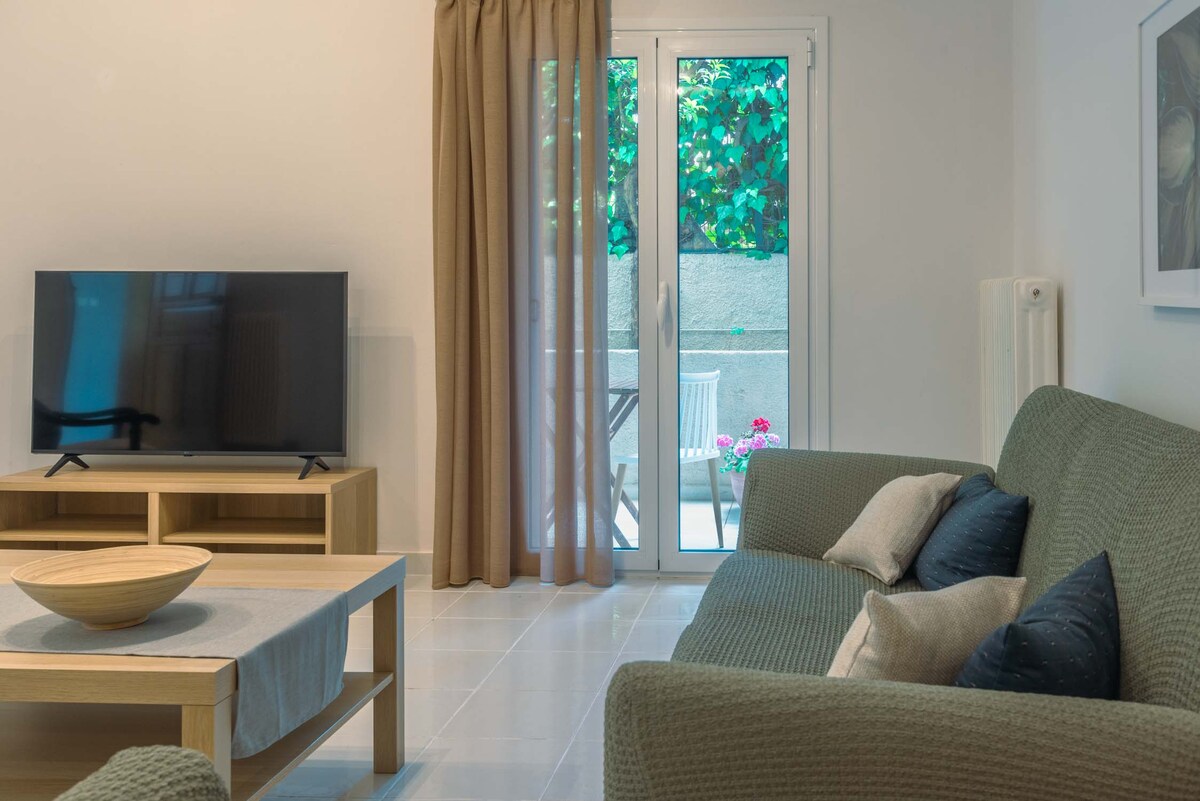 It's an independent and comfortable apartment, 60 m2 with direct access to a beautiful garden and a great view of the sea from the living room and the bedroom. Located in a very quiet area of Artemida (Athens suburb) 1,8 km from the center of the town, 15 minutes drive from the airport and 20 minutes from Rafina port. Our guests can enjoy moments of relaxation between flights or book a full holiday away from the noise of the center but close enough (1,8km) if you want a restaurant or a pub.