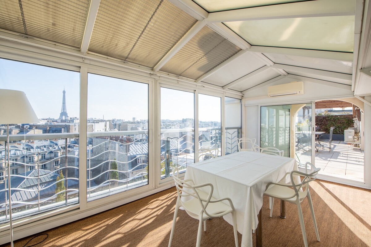 Intermedia Immobilier is offering this spacious 100 m2 and unique space with an Incredible view on the Eiffel tower form every room in this luxurious appartement nested in the 10th floor deserved directly by the elevator with a 50 m2 terrasse with a 360 degrees view on Paris landmark Eiffel tower Sacre Coeur Mount Valerian and too too many to list .