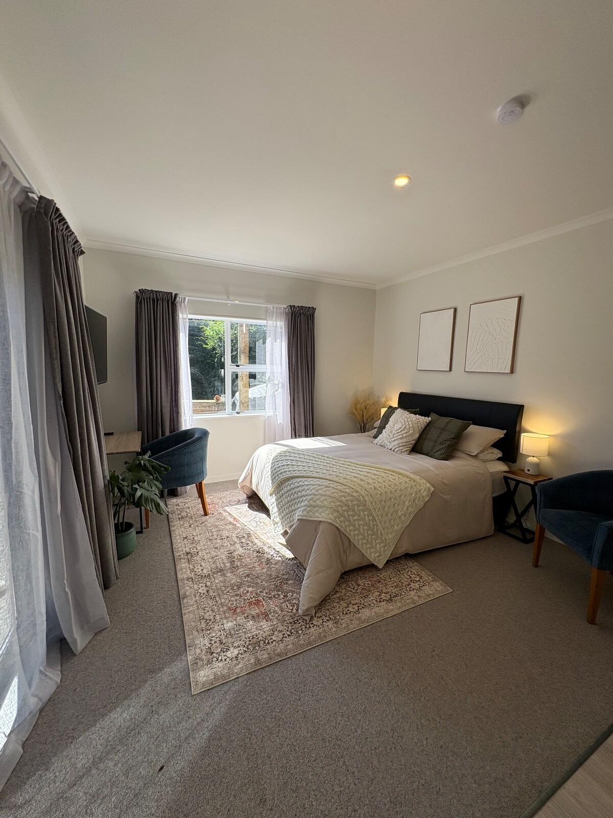 Cosy, light-filled studio tucked under our family home, perfect for couples, solo travellers, or a quiet getaway. The space has a calm, airy feel with its own entrance and a little outdoor bench for morning coffee. Access is via a steep driveway or steps along the house down to the school walkway. You’ll be close to walking tracks, beaches, cafés, and shops, with the warm, friendly energy of a family home.