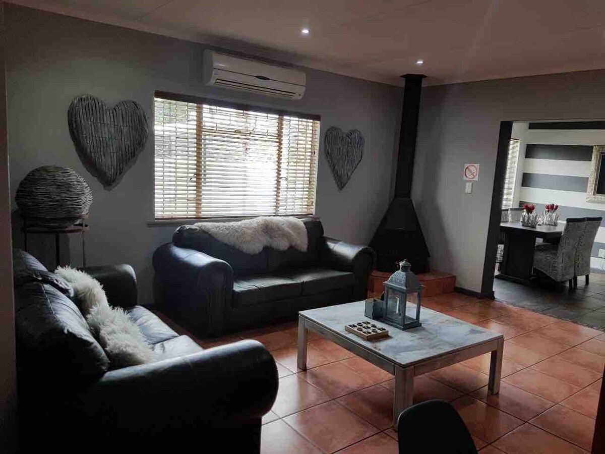 Karoo Heart Luxury Accommodation is a self catering unit. This 3 bedroom unit features a garden with a barbeque, air-conditioned rooms/living room, safe double garage parking, outside parking behind barbwire and security beams also available. Play gym for children. Xtra thick windows in rooms to reduce sound. The kitchen is fitted with an oven, a microwave, fridge/freezer, toaster and kettle. A flat-screen TV with satellite channels(explora)is provided in 2 of the 3 rooms and living room.