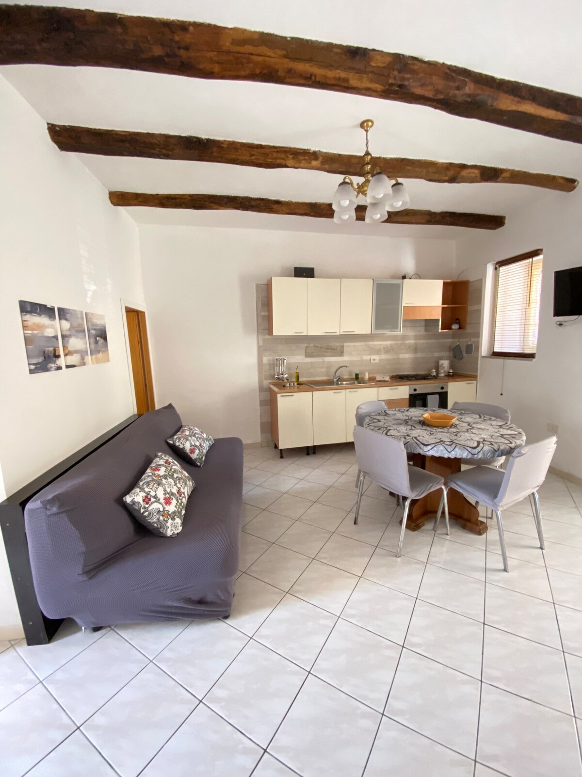 Our original family home. The apartment is characterized by the beautiful original cement tiles: it is bright, fresh, ventilated, well-furnished and equipped. Comfortable and quiet, with a large and usable balcony of 5 square meters, a view and an exclusive and enchanting location. Practical outdoor parking, unguarded but safe (local police/carabinieri barracks), 100 meters away. The heart of the village with shops, markets, bars and restaurants can be reached on foot in less than 5 minutes and the beaches, by car, in 15 minutes.