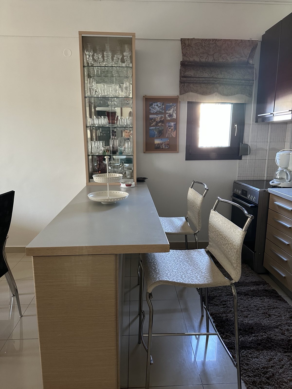 It concerns a 45 sq.m first floor,one bedroom nice apartment in front of the sea,with seaview balcony.Only 2 min walking from beach suitable for children and 8 min walking from the center of Kallikratia,where are shops, restaurants, night life, public transports and health facilities.Recently refurbished includes sunny living room with TV,WiFi,aircondition and two couches,a double bed bedroom with closet,bathroom with washing machine and fully equipped kitchen.There is private parking for a car