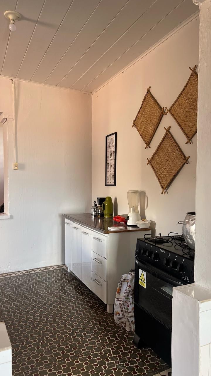 Sinta-se em casa neste espaço amplo, arejado e tranquilo, na parte alta da cidade. O quarto, no andar superior, oferece ótima ventilação, cama de casal, ventilador e purificador de ar. Localização de fácil acesso, rua calma e com estacionamento. Ideal para descansar, com a companhia tranquila de dois gatos que circular livremente pela casa.