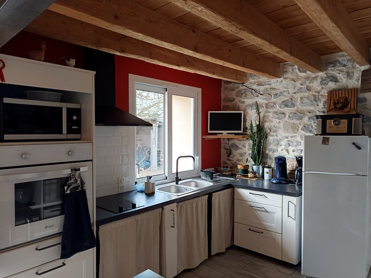 This is our newest 3 bedroom gite on the property. The kitchen is fully functional and spacious. Two cooking induction rings are in function. You will also find a dishwasher and a coffee machine + a water boiler. The living room has basic yet comfortable furniture. The gite includes a private entrance and a garden. The swimming pool and terrain are shared with other guests. The property is not baby/child proof.