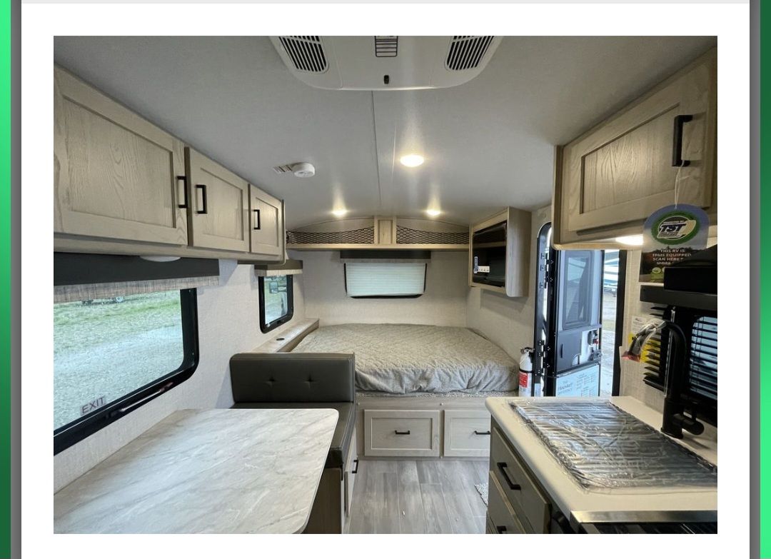 Welcome to our modern 30ft. travel trailer! It features a roomy living area with dining table and chairs and a love seat. The bedroom offers a queen-size camper bed. The bathroom has shower stall, sink and toilet. If you should find out that your desired date is not available, pls. inquire about our second opportunity as we also have a 40ft. Motorhome "Camper's Delight" available for the season.