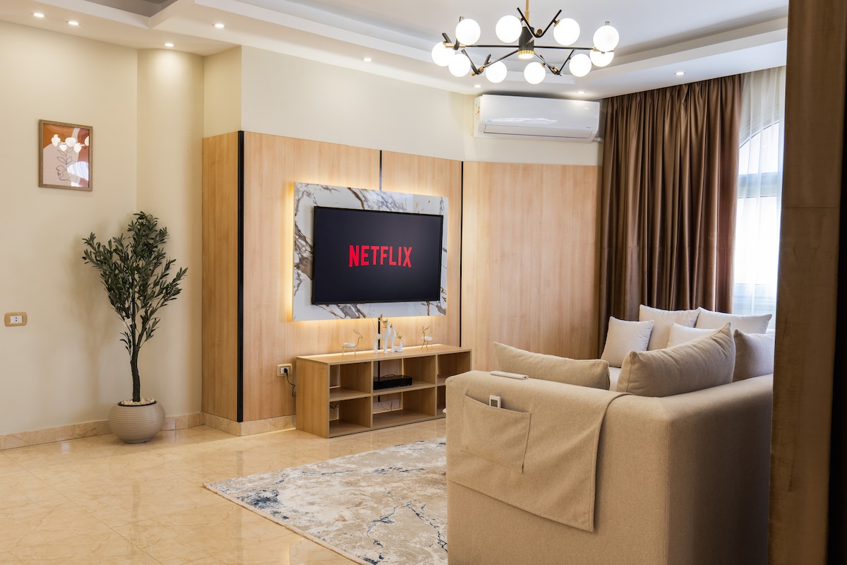 IMPORTANT NOTICE: PARTIES and UNREGISTERED EXTERNAL GUEST are STRICTLY NOT ALLOWED in the house 🙏 NOTE: The apartment is located on the second floor with stairs access (no elevator). Doorman will carry all luggage upon check-in. Luxury 4-bedroom apartment in a prime location near Cairo Festival City Mall, 5A, and Downtown Mall. The apartment comfortably accommodates 7 people and is just 20 minutes from the airport. It is close to various shopping, dining, and entertainment options.