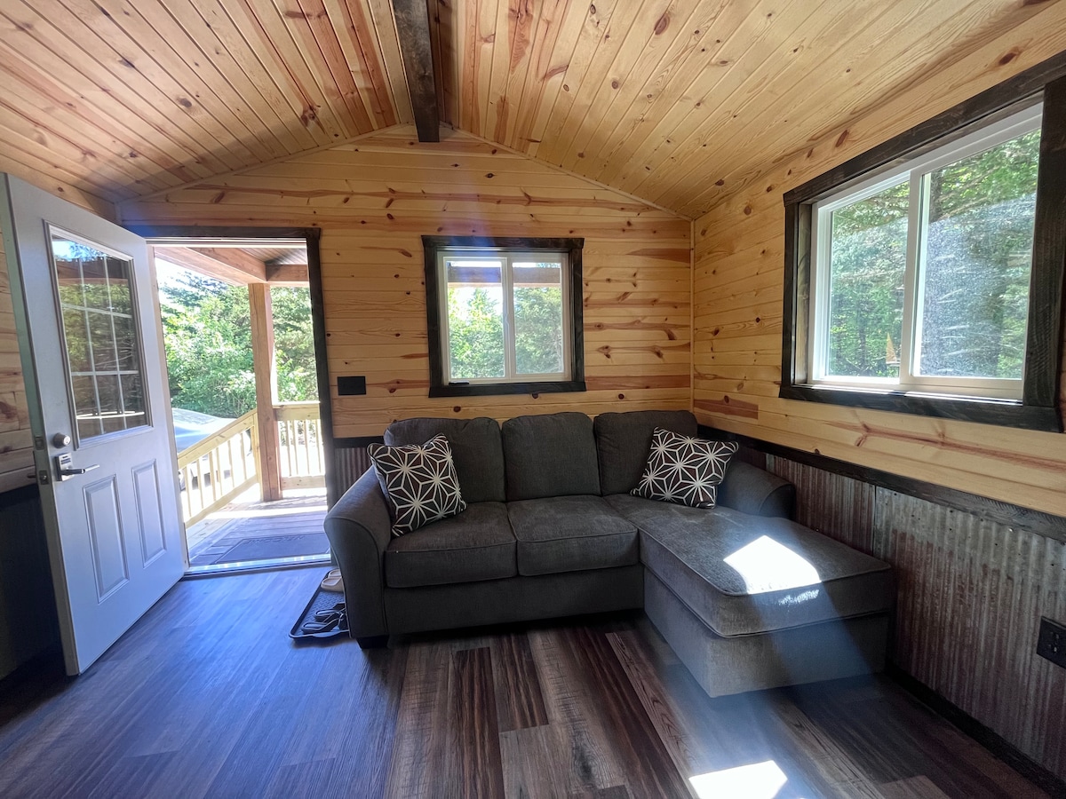 Located 20 minutes from downtown Lawrence, the Batch is a sustainable tiny house nestled in the cedar forests of Perry, KS. Decorated in a minimalist southwestern style, this tiny cabin is a serene and peaceful setting for souls seeking restoration, quiet, and the healing qualities of the woods. Or just a great place to getaway with your love or friends with an even greater view!