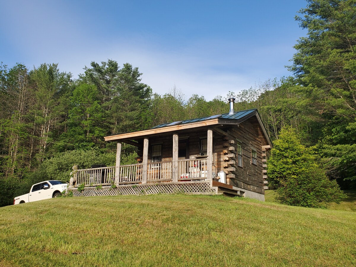 Watch the sunrise over the Green Mountains from the porch of a rustic off-grid Log Cabin. Enjoy a million dollar view, while relaxing in a serene, location set in the beautiful VT landscape. Log Cabin is equipped with a finished basement, suitable for sleeping 3 guests. Lighting is provided by Propane Lamps and Heat is from a Wood Stove. There is a clean outhouse just outside the cabin and generator in the shed which provides electricity and running water.