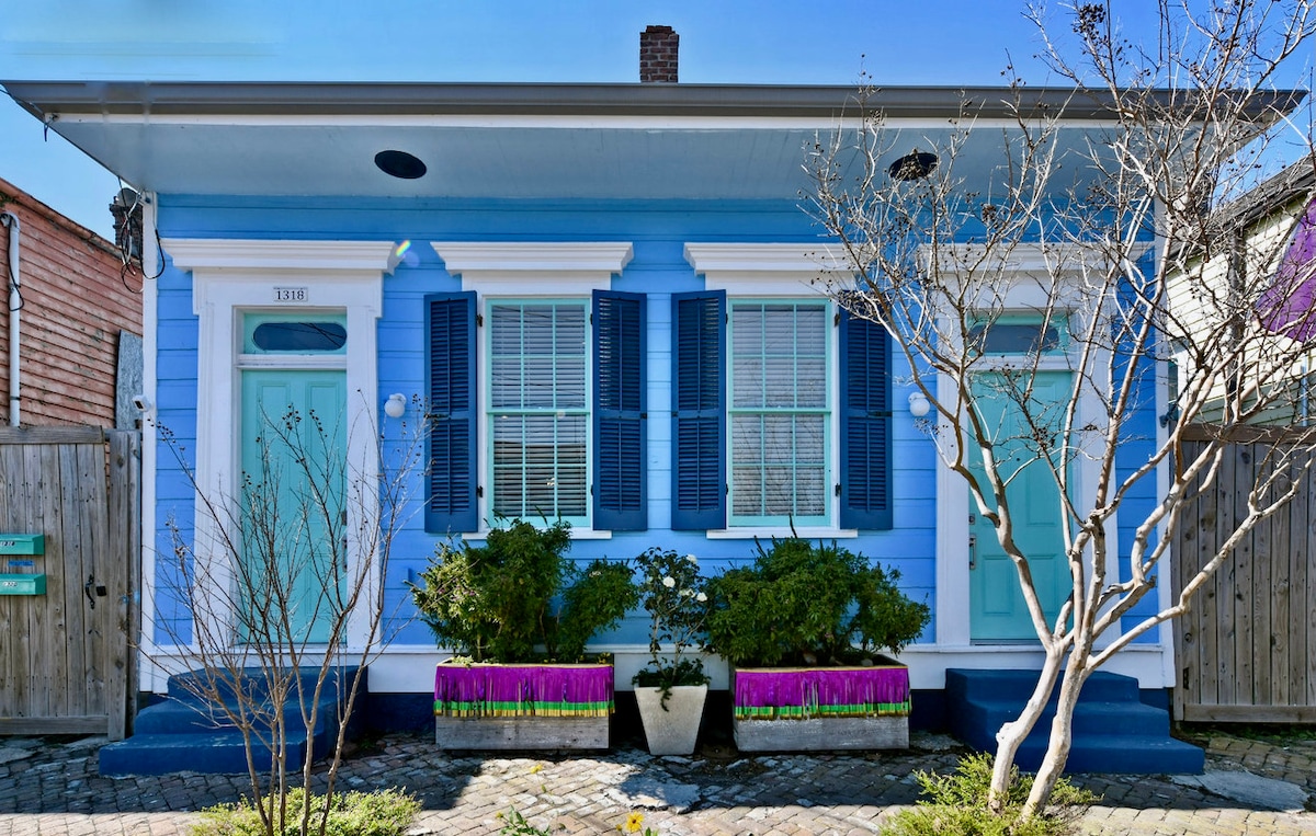 Your perfect base for exploring New Orleans. Heart of the Bywater. Steps from Crescent Park, walking distance to Frenchmen St and the French Quarter. Your home is on a quiet tree-lined street but only 2 blocks away from all the best restaurants and bars in the city. 2 blocks away from the brand new Riverfront Crescent Park which takes you all the way to the French Quarter. Unbeatable location! Perfect for JazzFest, Mardi Gras, Halloween, and convenient for any conventions in town.