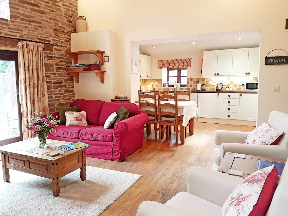 Self-contained luxurious annexe for one or two guests. A calm and comfortable space to relax in. Finished to an extremely high standard, with high ceilings and oak beams and posts. Fully insulated with underfloor heating, beneath flagstones. The kitchen is fully equipped with an oven and hob, microwave, Airfryer, fridge, dishwasher, washing machine. Set in a stunning, peaceful location on the border between England and Wales with breathtaking views. The perfect way to experience country life.