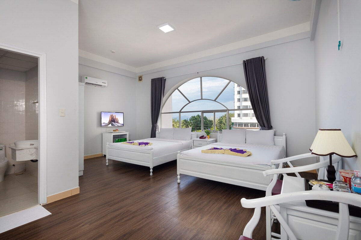 Stay at our 4-star hotel by the ocean in the heart of Nha Trang! Enjoy the outdoor jacuzzi, 24-hour front desk, and free Wi-Fi. Each room includes air conditioning, seating area, flat-screen TV with cable, safe, private bathroom with shower, toiletries, hairdryer, and a kettle. You’ll be steps from the beach, local eats, and nightlife—perfect for exploring the city. Just a heads-up: being in the lively center means you might hear a bit of Nha Trang’s vibrant buzz now and then.