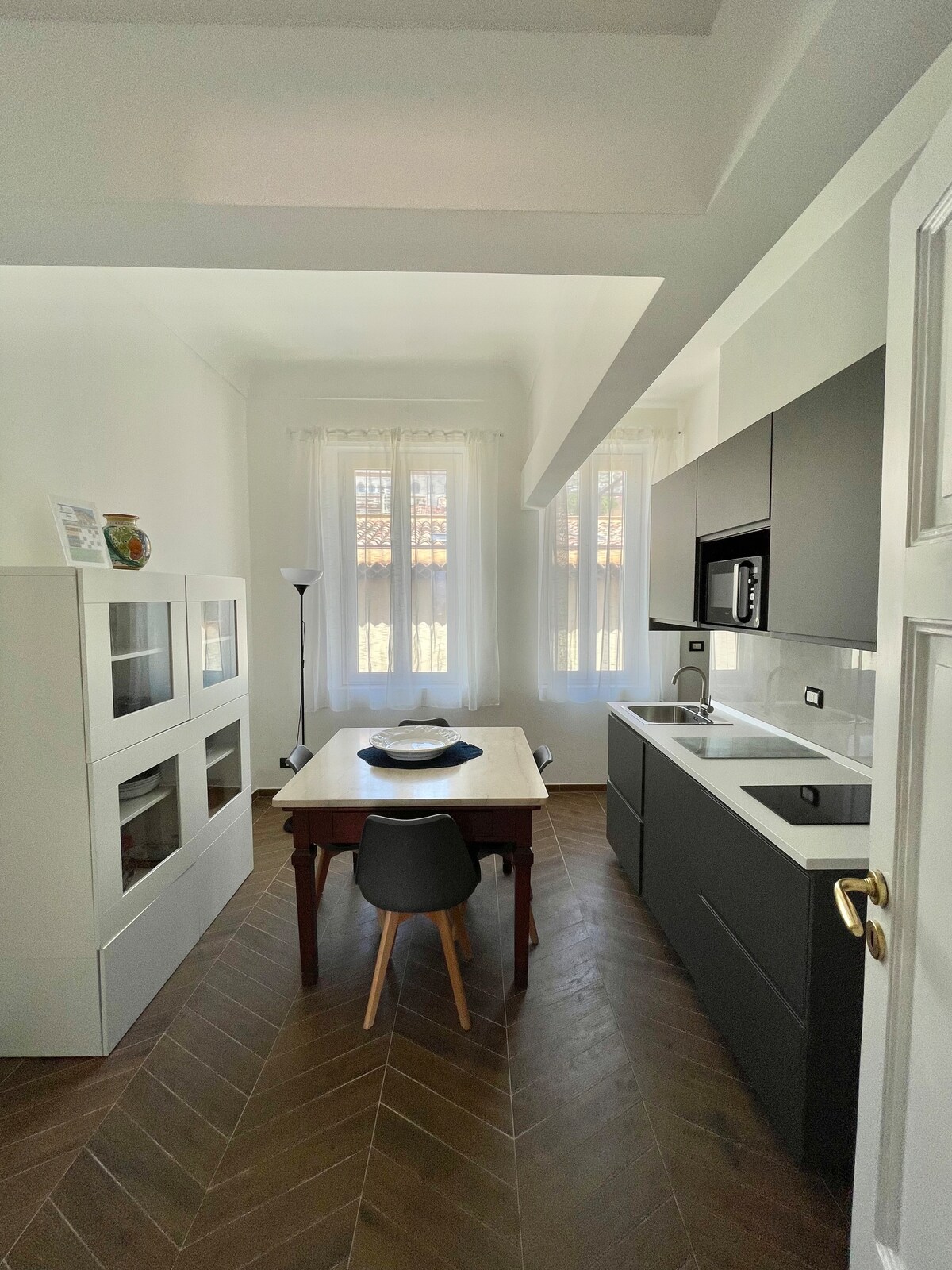 Immerse yourself in history and style in the heart of Catania. This elegant apartment sits inside a 19th-century palace adorned with original frescoed ceilings, a rare chance to stay somewhere truly authentic. High vaulted ceilings and six balconies overlooking the historic center bring in natural light and a sense of space. Just a 5-minute walk from Piazza Duomo, the famous fish market and Teatro Bellini, you're perfectly placed to experience the authentic Catania. Private parking available
