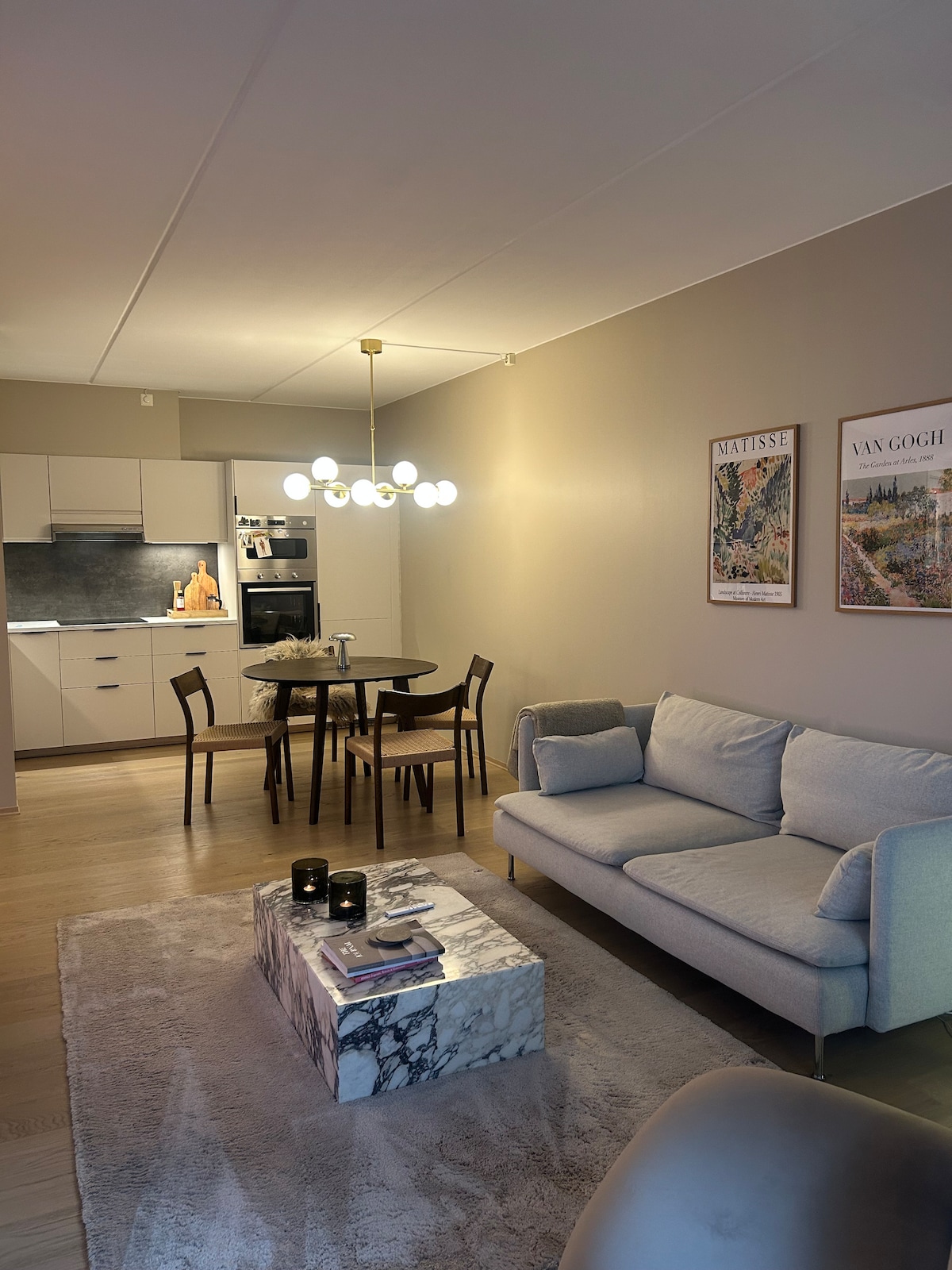 Velkommen til en nyoppusset leilighet på 104 m², beliggende i et trivelig område på Møllenberg, bare 2 minutters gange fra Solsiden Kjøpesenter, flybussen og kollektivtilbud. Leiligheten kombinerer moderne løsninger med klassiske detaljer som stukkatur og god takhøyde. Her bor du sentralt, men skjermet fra bystøy. Leiligheten passer godt for både private opphold, arbeidsturer og lengre besøk. Den åpne løsningen mellom stue og kjøkken gjør den velegnet for matlaging og sosiale sammenkomster.