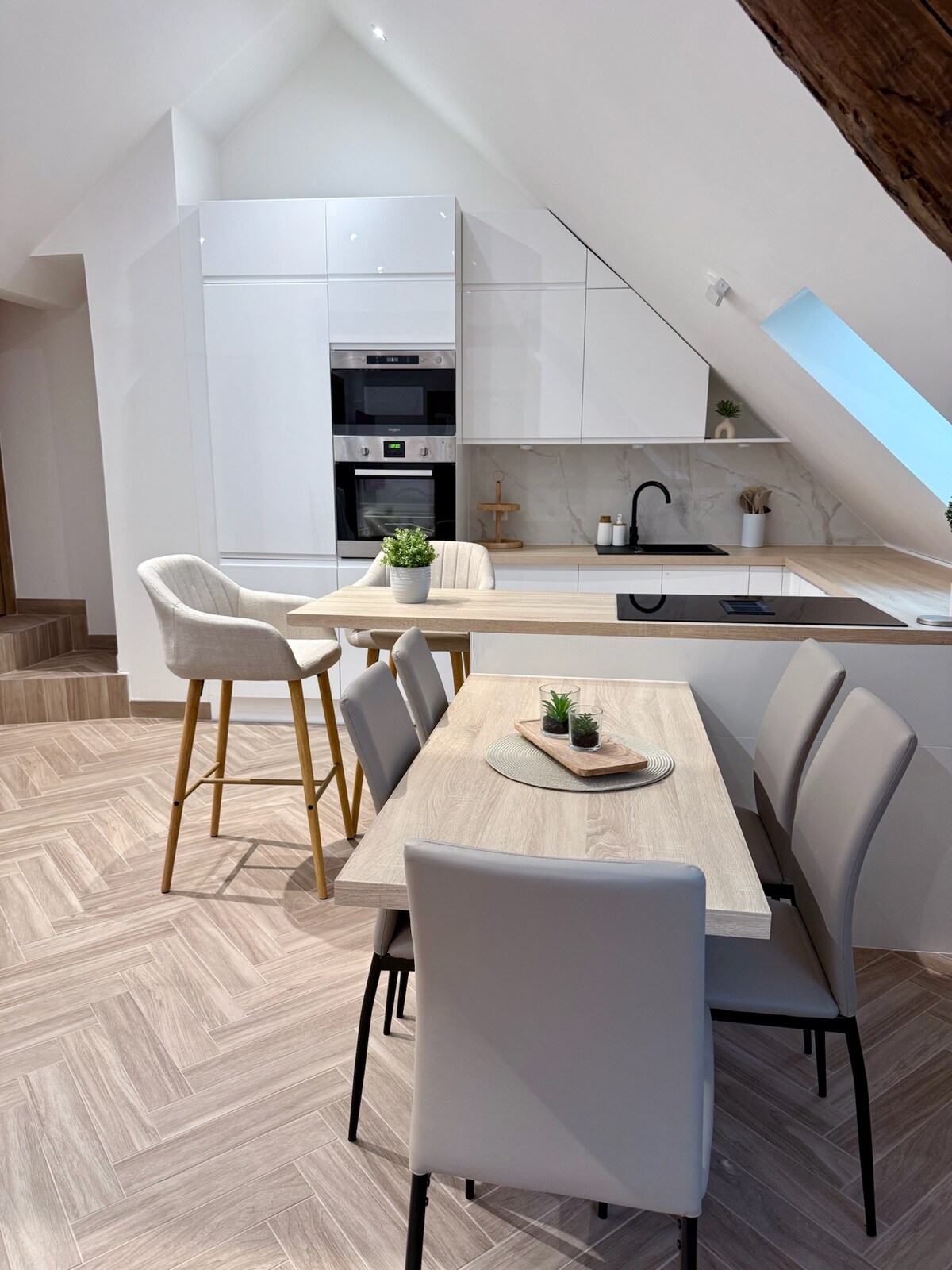 L'écrin des orfèvres - Triplex Cathédrale is an exceptional place for a romantic getaway. Nestled in the heart of Strasbourg's Golden Square, overlooking Cathedral Square and its Christmas market, it enjoys one of Strasbourg's best views of Notre-Dame. This old building, whose origins date back to the 13th century, has undergone a high-quality renovation, a perfect combination of modernism and old-fashioned charm...