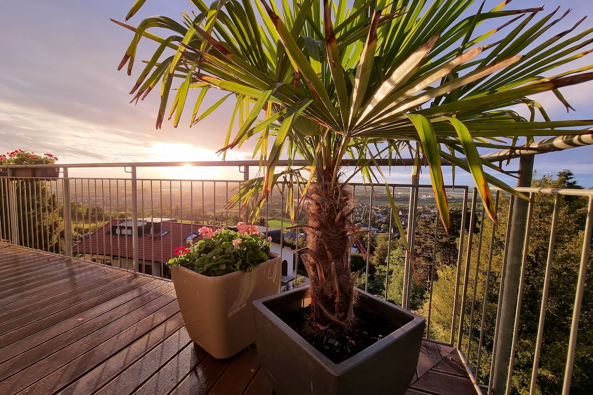 Das Bergsträßer Nestchen Lovingly furnished, close to nature apartment with garden, terrace (with Starkenburg view), garden shower and sauna. 5 km to the center of Heppenheim. Great views of the beautiful garden-from every room. 5 minutes walk and you are in forest and meadows. On the terrace you can enjoy the sunset. For ideal indoor air, an air purifier with HEPA/activated carbon filter is available for removing pollen, odors, airborne allergens, etc.