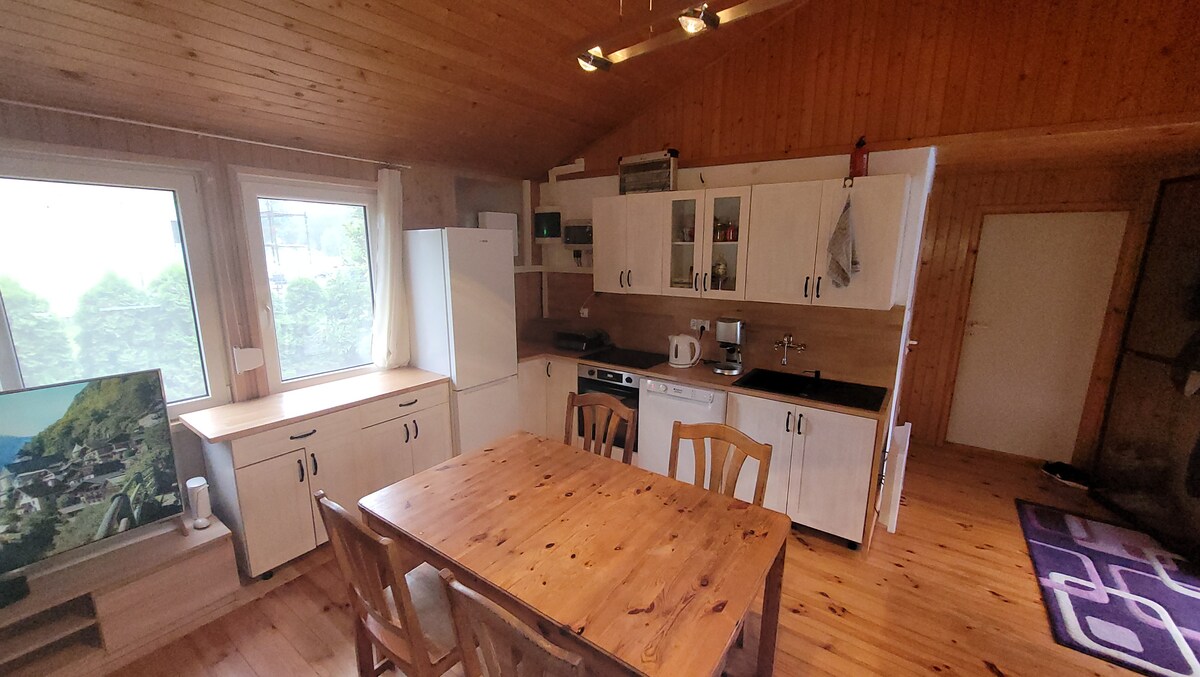 Take it easy at this unique and tranquil getaway. Sit at the window and watch Andrzej - the stork, Kazik - the fox, the doe with the kids. Turn off your phone and let the cranes wake you up. Listen to the frogs croaking in spring, admire the fireflies in summer, look for mushrooms in autumn and ride a tire in the snow in winter. Rzut Beretem is a lake where you can rent water equipment, and outside the window you have... a forest perfect for hiking and cycling - the Kashubian Landscape Park. :)