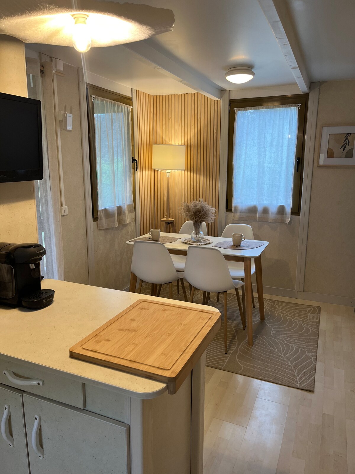 Warm traditional wooden chalet located in the heart of Morvan and 200 m from Lac des Settons. You have an enclosed garden with a covered terrace and parking space. A bright, friendly living room with 2 bay windows, a kitchen open to the living room, the sleeping area includes a beautiful isolated bedroom with a double bed (140 x 200) on the ground floor and another with a pull-out bed or 2 single beds (90 x 190) on the mezzanine. The chalet is number 33, not 53
