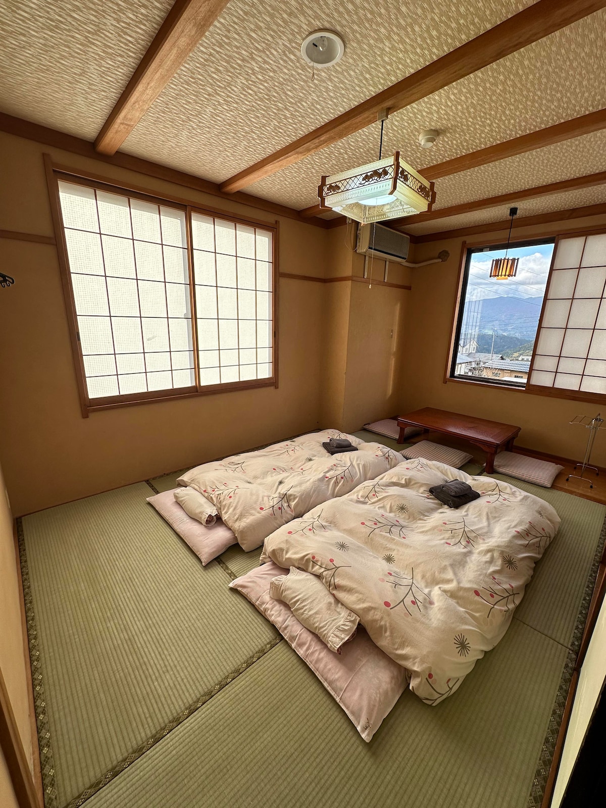 Welcome to the Chohachisou Lodge in Nozawa Onsen. Located in the heart of this charming mountain village, our family-run lodge provides an authentic Japanese experience perfect for your ski getaway. We offer cozy rooms featuring traditional tatami mats and Japanese-style mattresses for a unique and comfortable stay. While each room ensures privacy, please note that bathrooms and showers are shared with other guests. Great location just 150 meters from the nearest Onsen and the Karasawa lift.