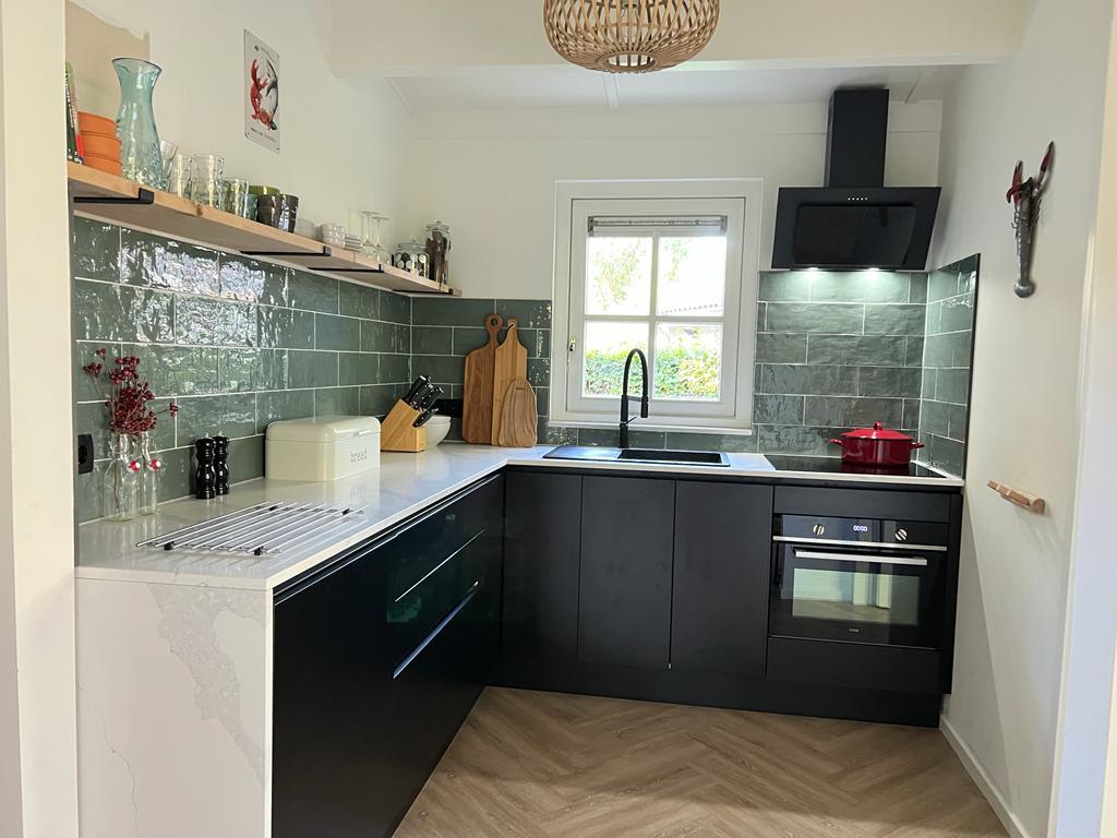 Bird Barn is decorated by a creative duo. Everywhere you see artistic details, in the middle of the greenery and close to beautiful hiking and biking trails. Large glass sections offer views of the greenery and the meadow behind. The living room is tastefully decorated with a seat by the fireplace and Smart TV. Well-equipped kitchen, including a dishwasher, electric oven. Three beautiful bedrooms The bathroom has a double bathtub with two sinks and a toilet. Separate shower and an extra toilet.