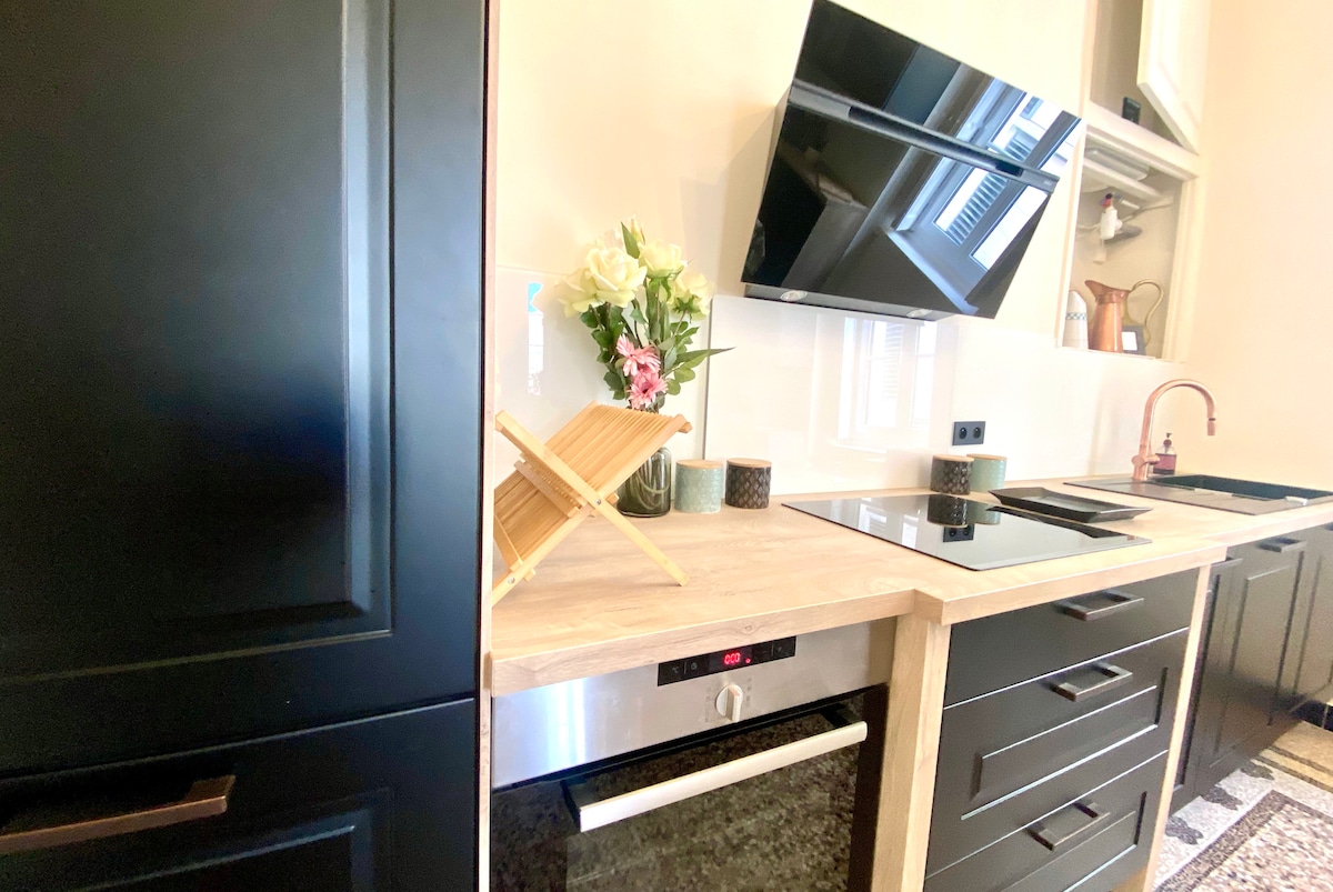 « Le 11 » est un appartement ⭐️⭐️⭐️⭐️ dédié aux voyageurs souhaitant un haut niveau de standing ainsi qu’une conception innovante et atypique. Il se compose d’une chambre avec un grand lit fixe (160/200) avec sa salle de bain attenante et ouverte sur une douche italienne, d’une cuisine équipée, d’une terrasse de 15m2 privative et d’une place de parking sécurisée. Il est également équipé d’une grande TV 4K avec le service de streaming NETFLIX connecté 🍿🍫🎥